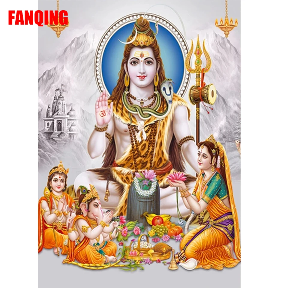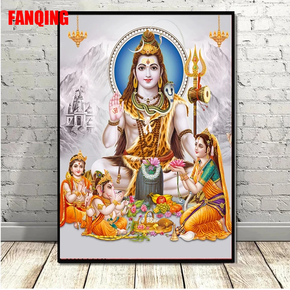 Diy алмазная живопись Shiva Parvati Ganesha, индийское искусство, фигурка индуийского Бога, 5D мозаика, искусство