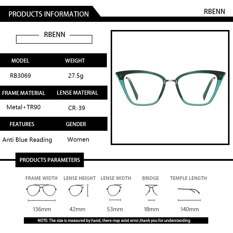 Женские очки для чтения кошачий глаз RBENN, с защитой от сисветильник, для чтения дальнозоркости + 0,5 0,75 1,50 2,25 2,50 2,75