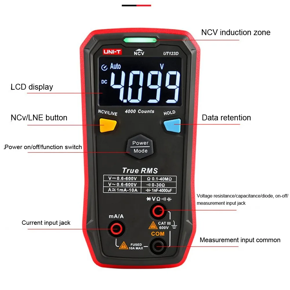 Мультиметр UT123UT123D Цифровой Компактный, бытовой Карманный, NCV,...