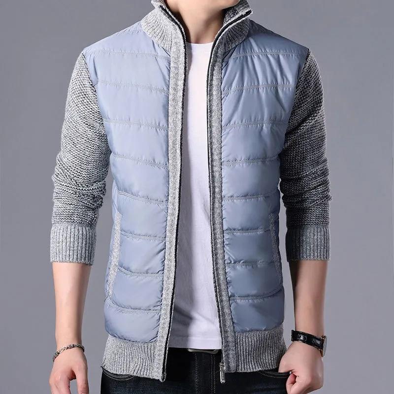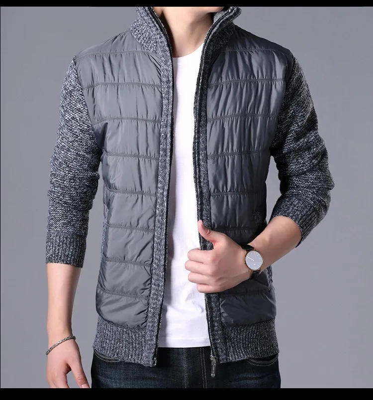 Мужской плотный свитер, парка на молнии, в стиле пэчворк, верхняя о...