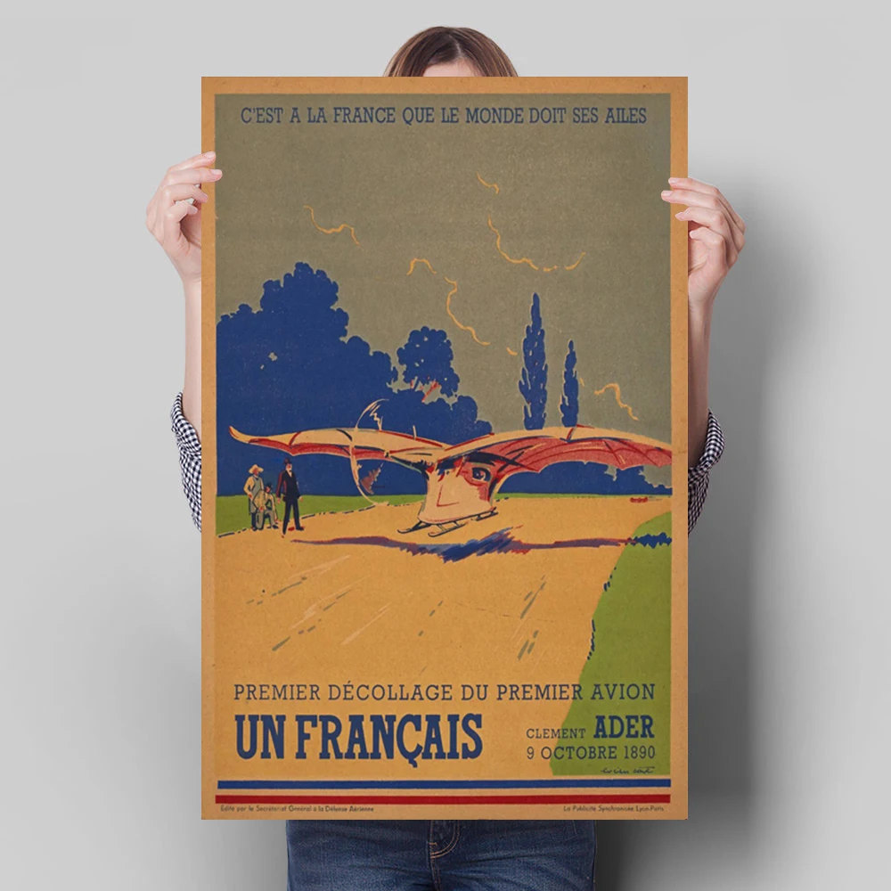 Винтажное украшение с изображением воздушного французского самолета, настенный плакат в стиле ретро, Картина на холсте для гостиной, настенные художественные принты для современного домашнего декора
