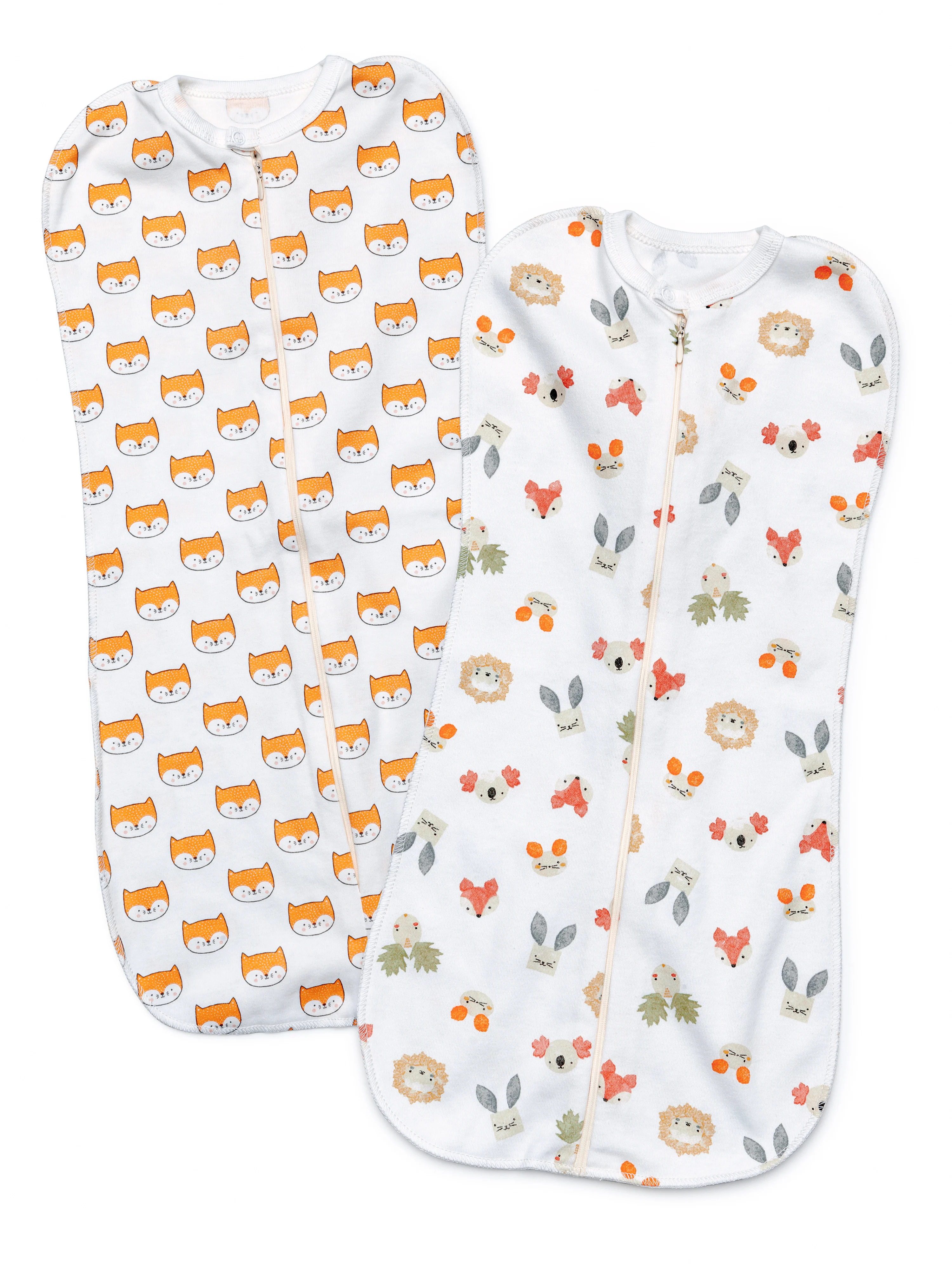 Комплект спальных мешков "Лисички+Звери" из натуральной мягкой ткани - интерлок (100% хлопок). Коконы на замке. Размер пеленок - 25х50 см. Подходят на рост малышей от 50 до 62 см. (0-2 месяца)