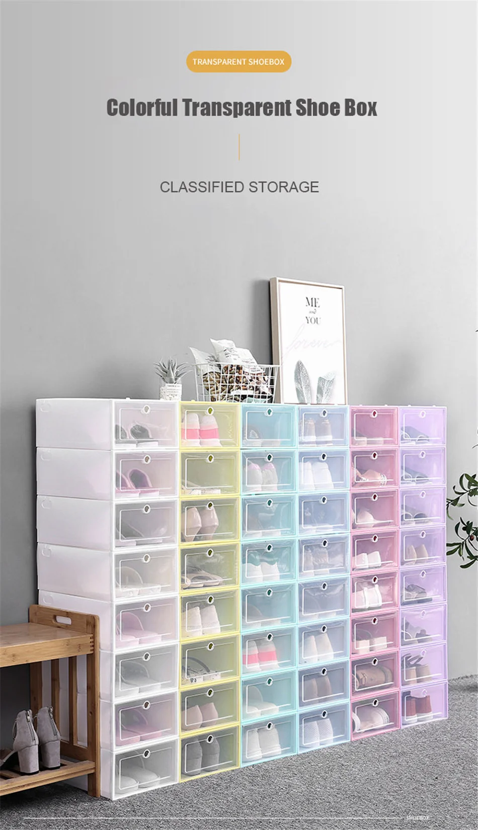 6 шт., прозрачная пластиковая коробка для обуви