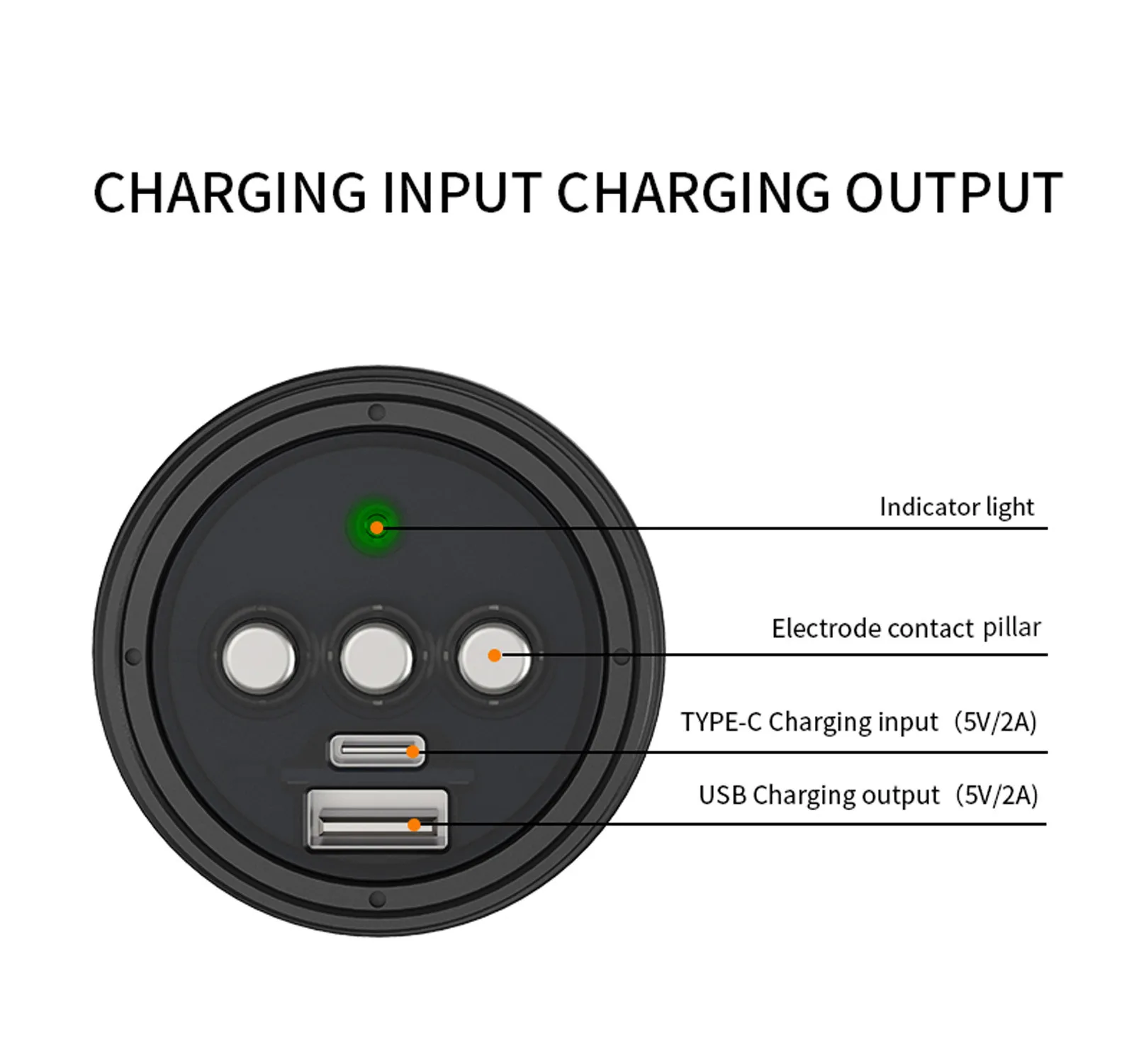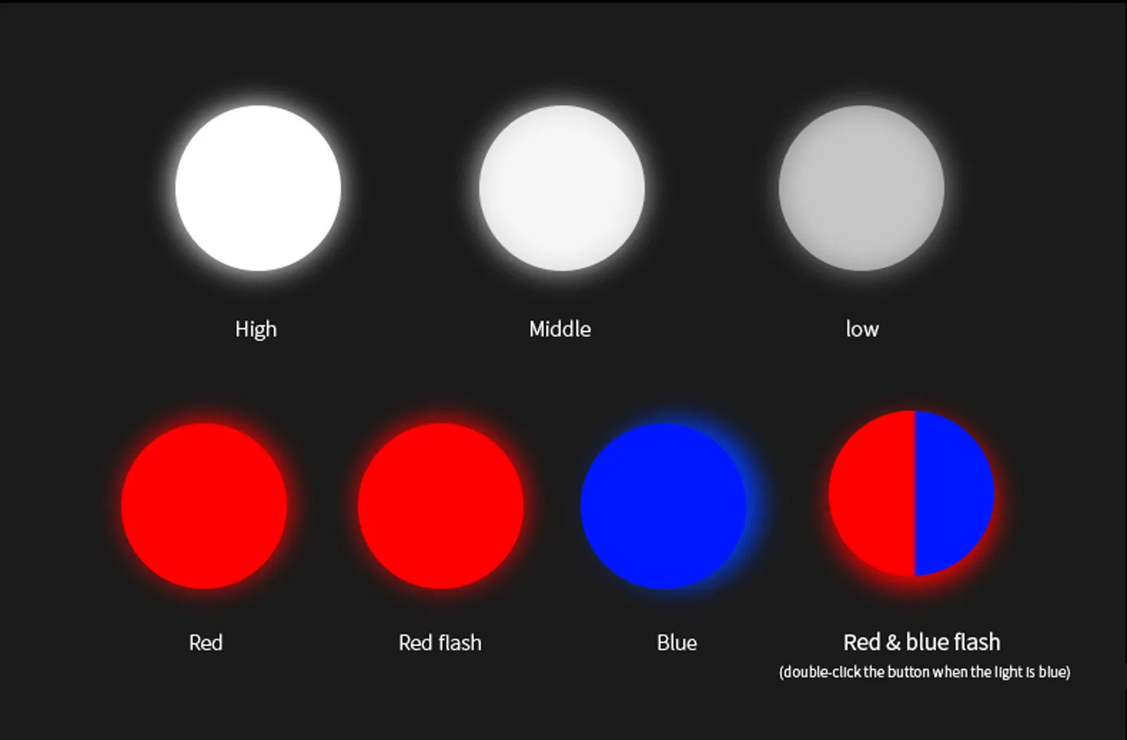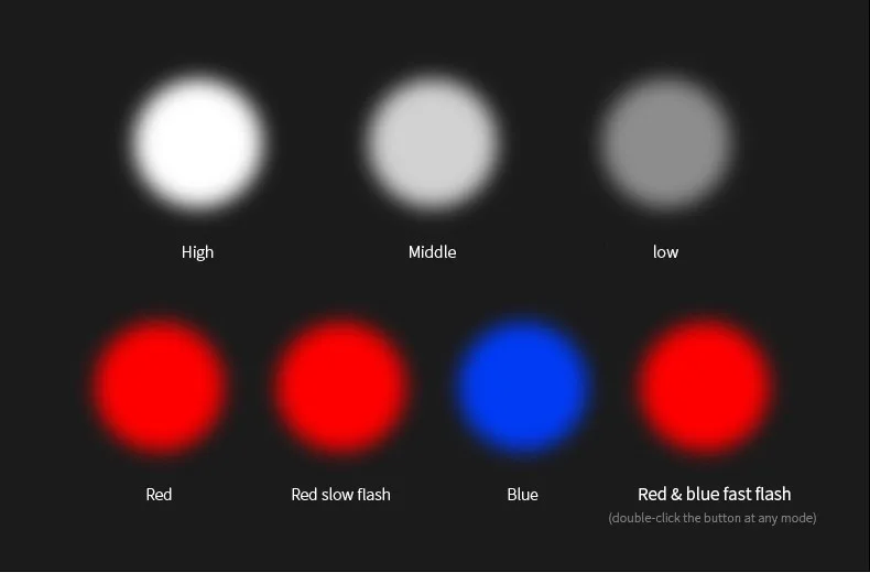 Белый светильник (левая клавиша питания): высокий/средний/слабый (выключено, чтобы долго нажимать кнопку в течение 2 секунд для любого режима)