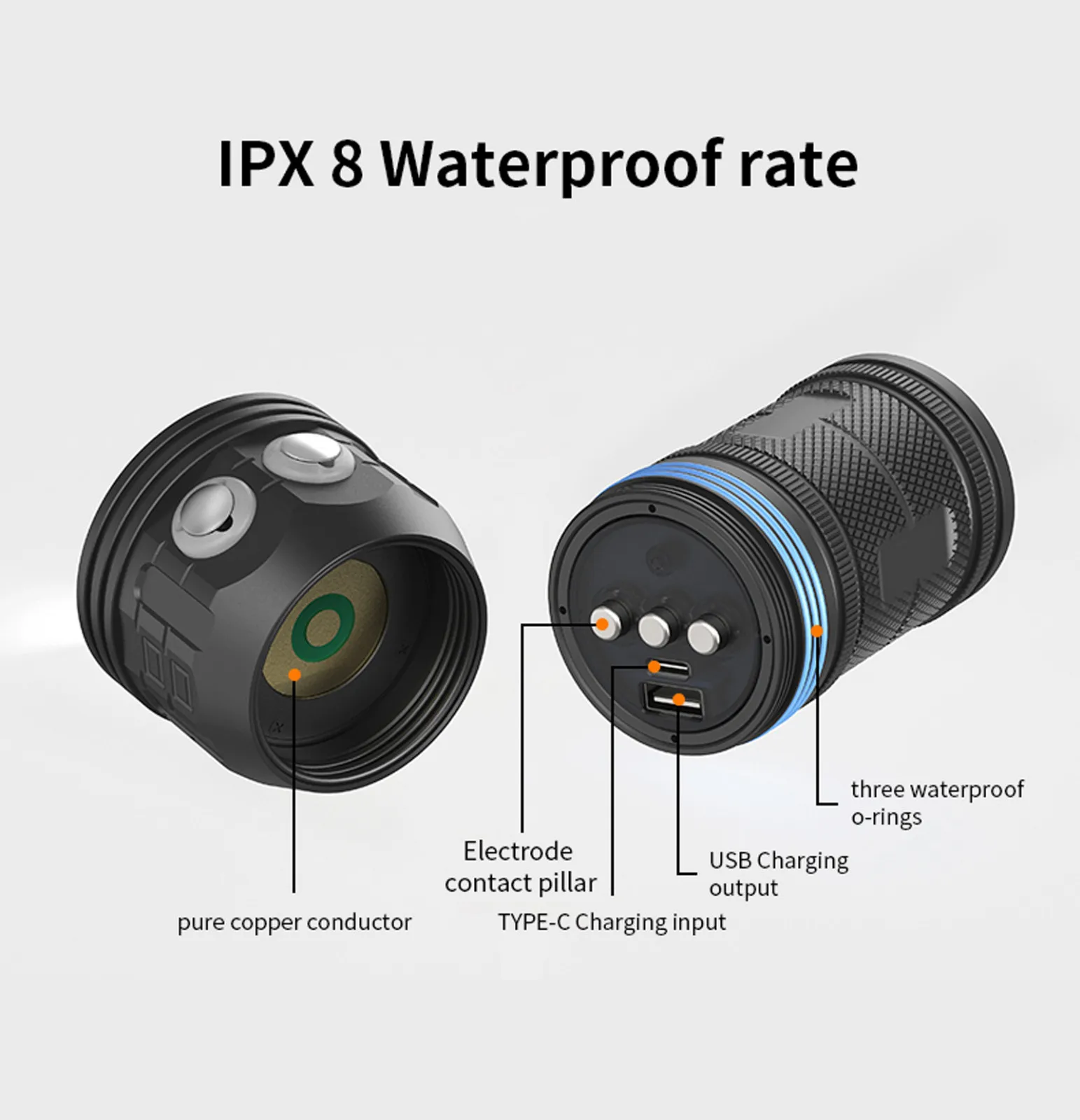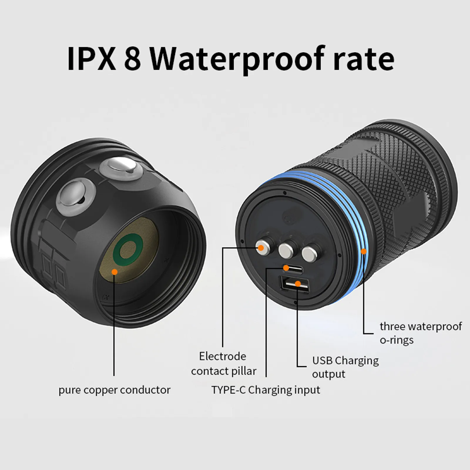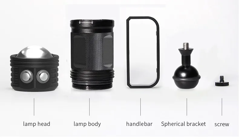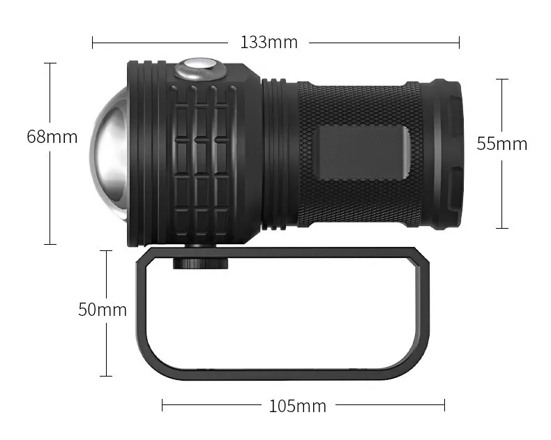 Мощсветильник Подводный фонарь для дайвинга, 12800 мАч, IPX8, 80 м,...