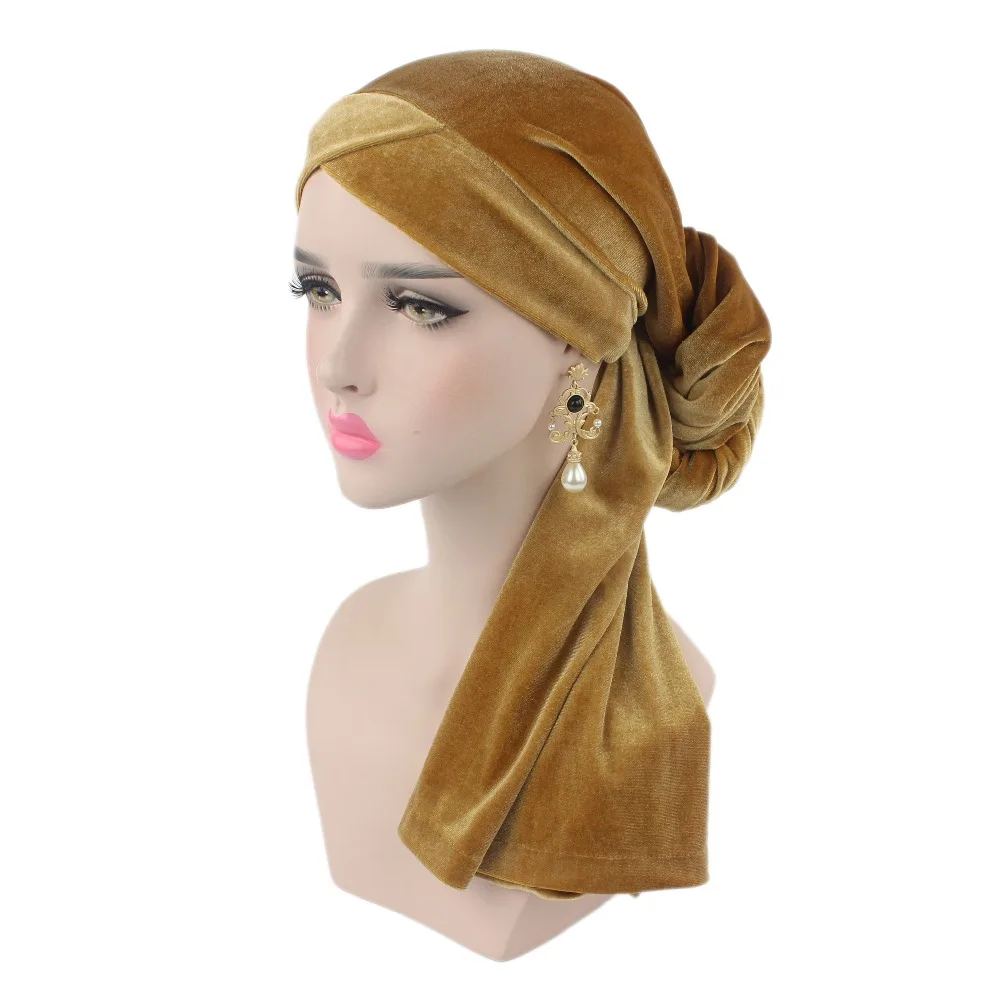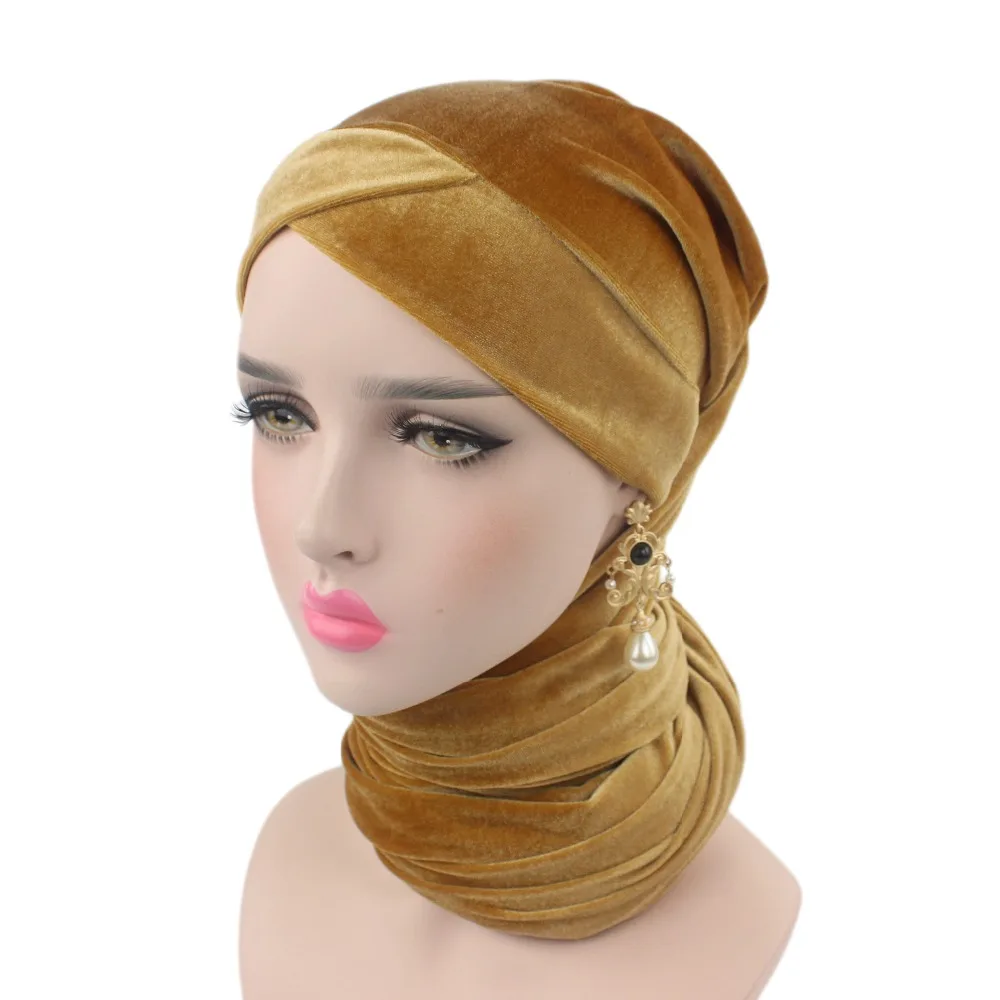 Роскошный плиссированный бархатный волшебный Тюрбан Хиджаб сверхдлинный индийский головной платок шарф галстук мусульманский головной убор женский эластичный головной платок