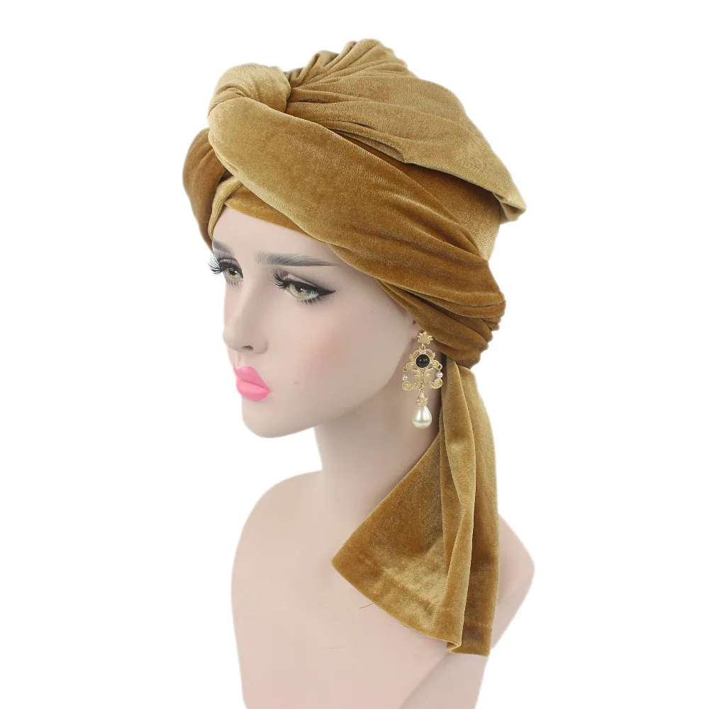 Африканский мусульманский Модный женский тюрбан шапка бархатный куп...