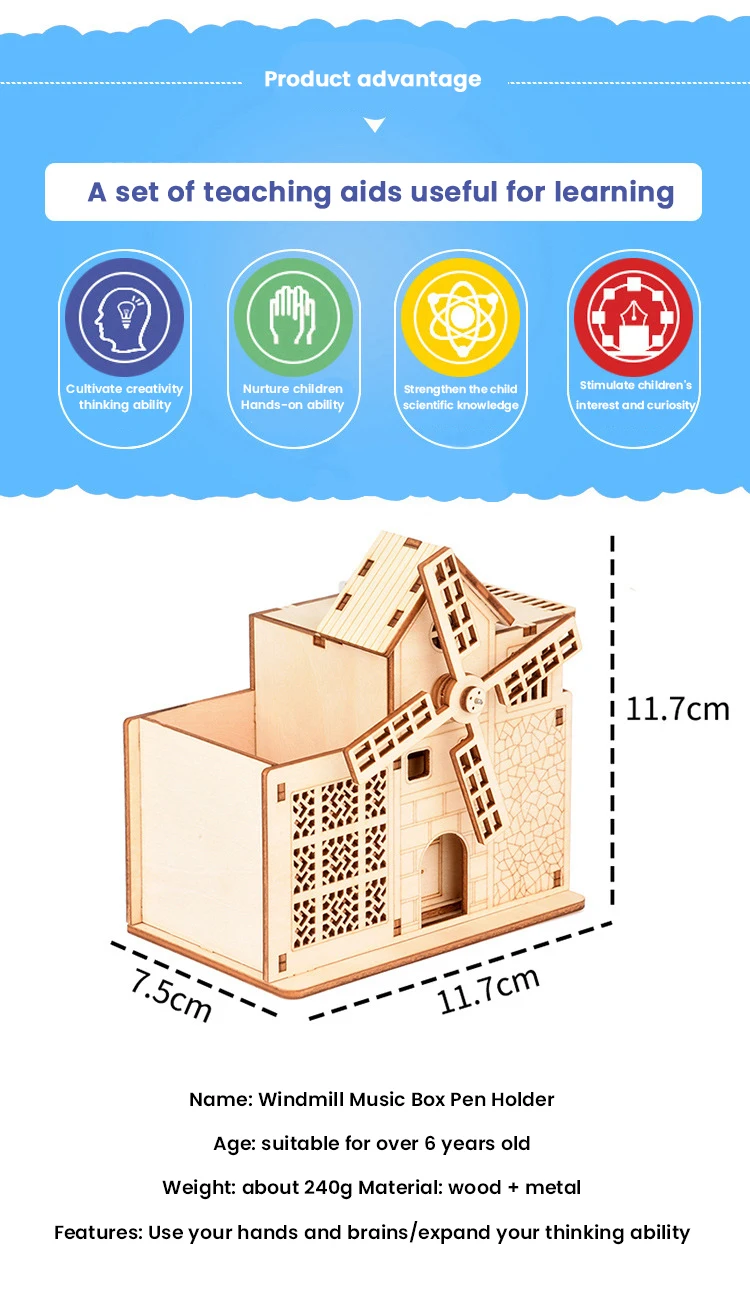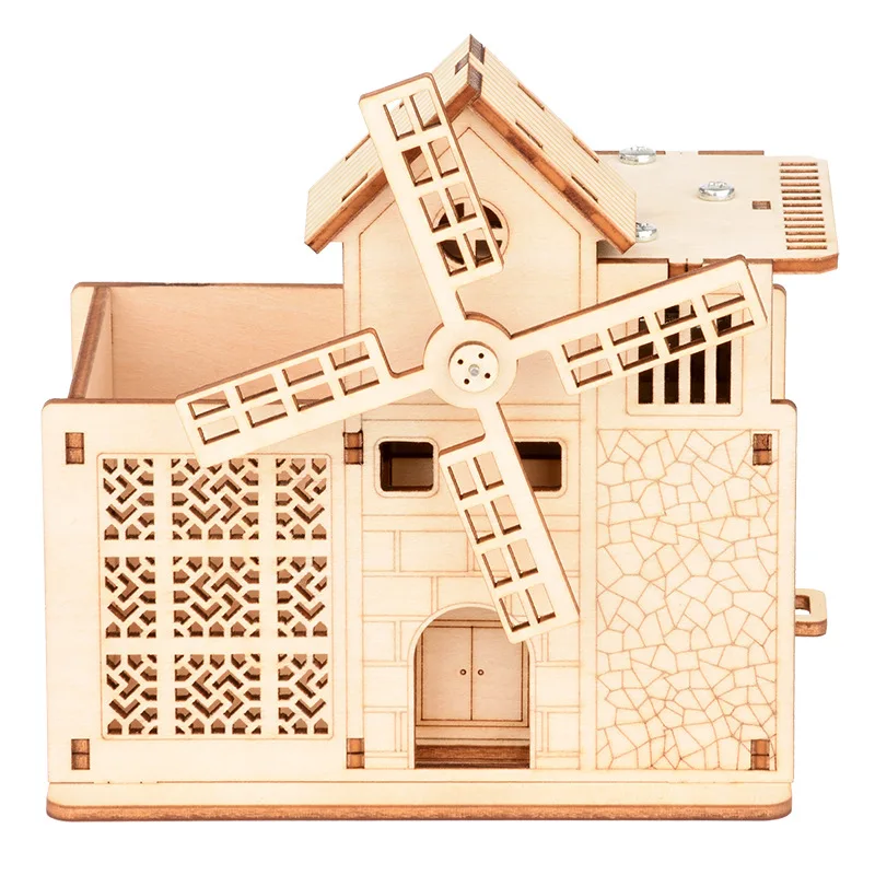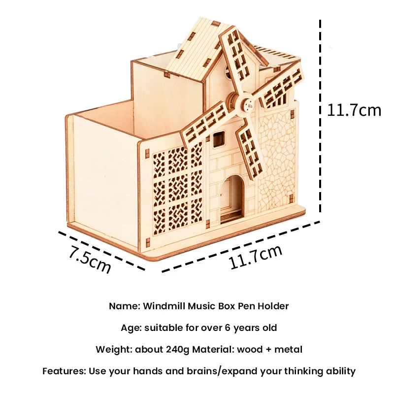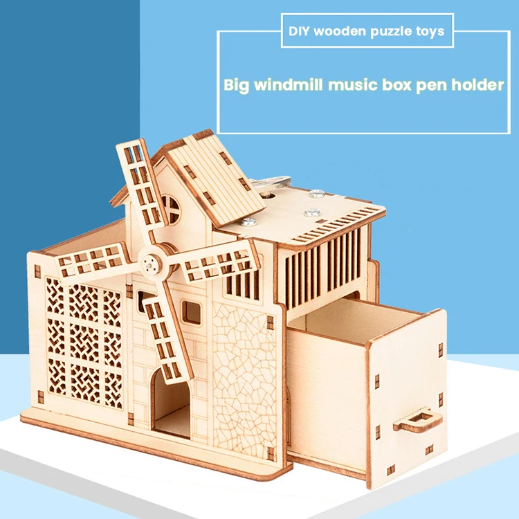Деревянная 3D-головоломка сделай сам, держатель для ручки с мельницей, музыкальная шкатулка в сборе, популярный подарок для детей и взрослых, на Рождество, день рождения