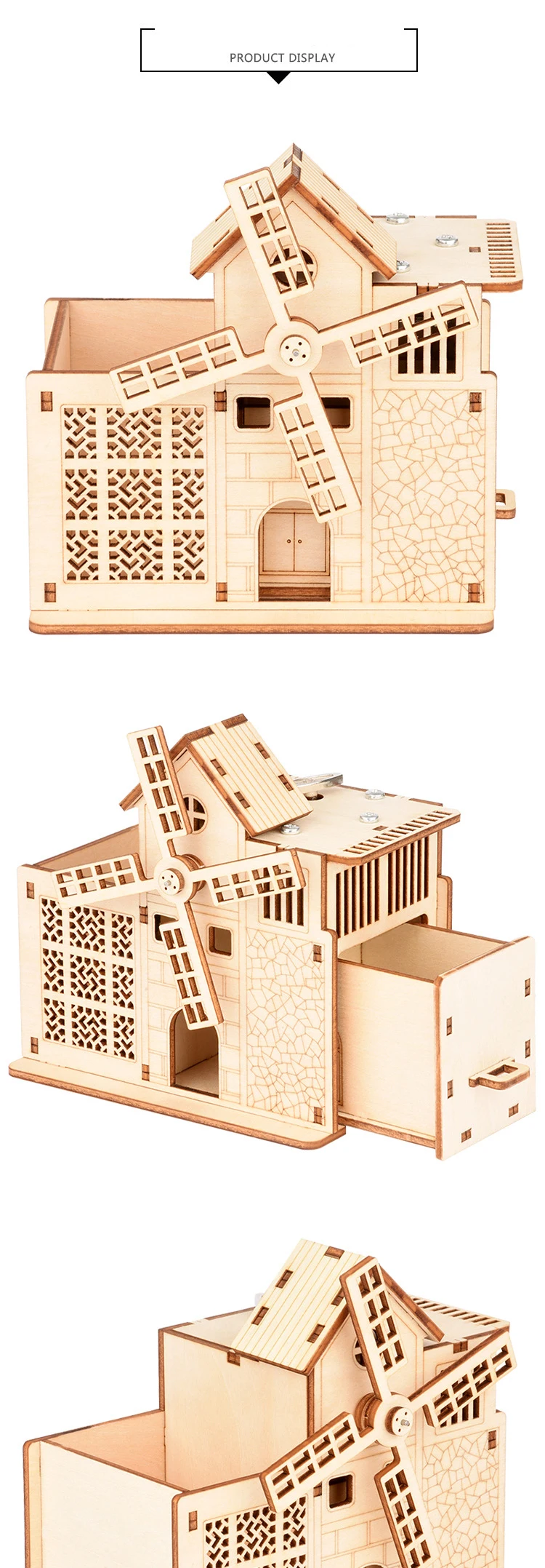 Деревянный 3D пазл творческая ветряная мельница "сделай сам" заводн...
