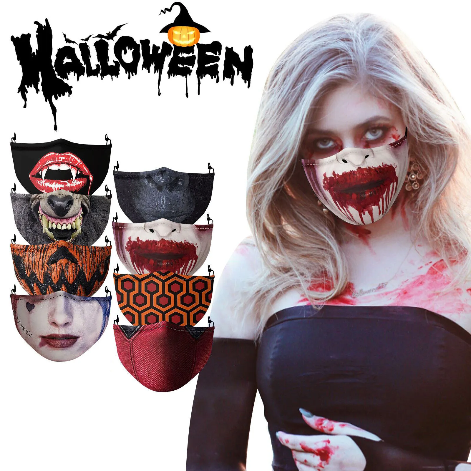 Многоразовая маска для косплея, маска для Хэллоуина с принтом волка вампира, хлопковая маска для лица, маска для улицы, моющаяся маска