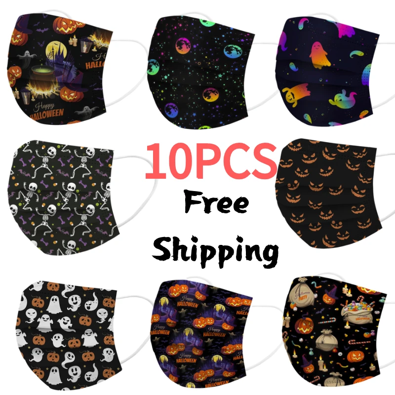 10 шт., одноразовые маски для лица, с принтом черепа