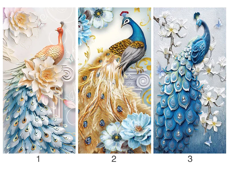 Картина маслом на холсте, 3 шт., Европа, Классический Павлин, ваза,...