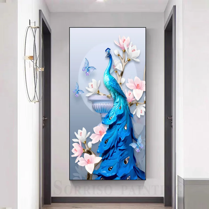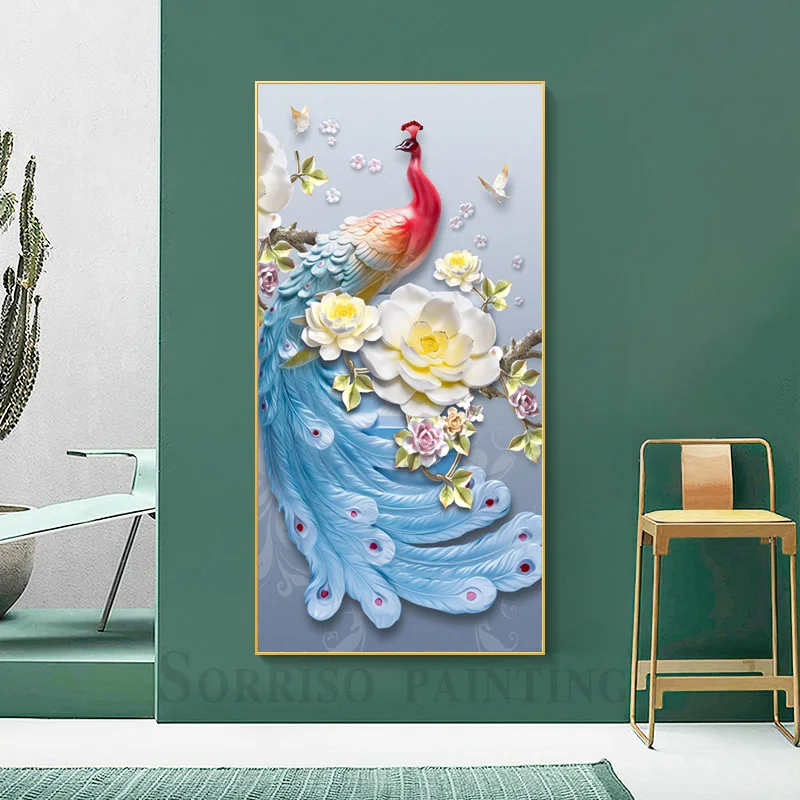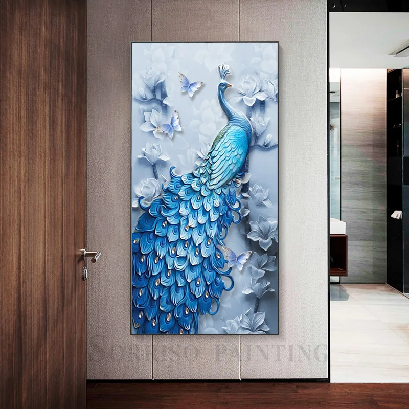 Картина маслом павлина на холсте, Современная Настенная картина для...