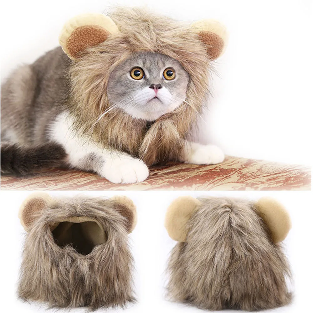 Забавный милый костюм для кошек, парик Львиной гривы, шапочка для кошек, маленьких собак, одежда на Хэллоуин, Рождество, нарядное платье с ушками, одежда для щенков