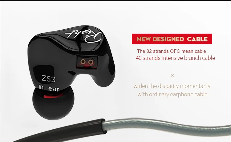 KZ ZS3 Динамический драйвер Hifi спортивные наушники-вкладыши шумоподавление гарнитура с микрофоном сменный кабель KZ EDX DQ6 ZST ES4 ST1 M10