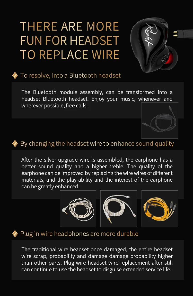 KZ ZS3 1DD Hifi спортивные наушники в ухо с динамическим драйвером шумоподавление гарнитура с микрофоном сменный кабель