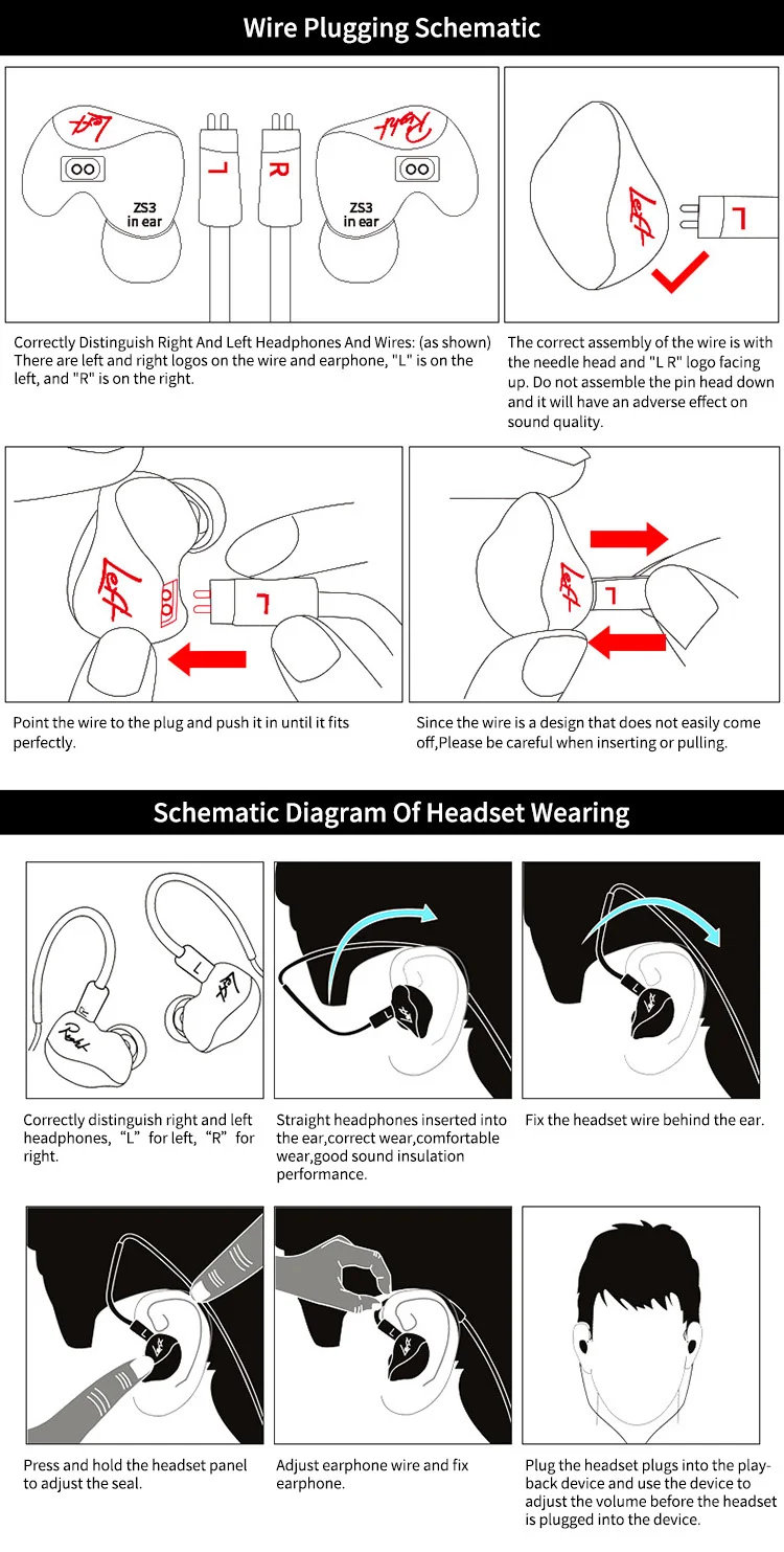 Эргономичные наушники-вкладыши CCA KZ ZS3 со съемным кабелем, шумои...