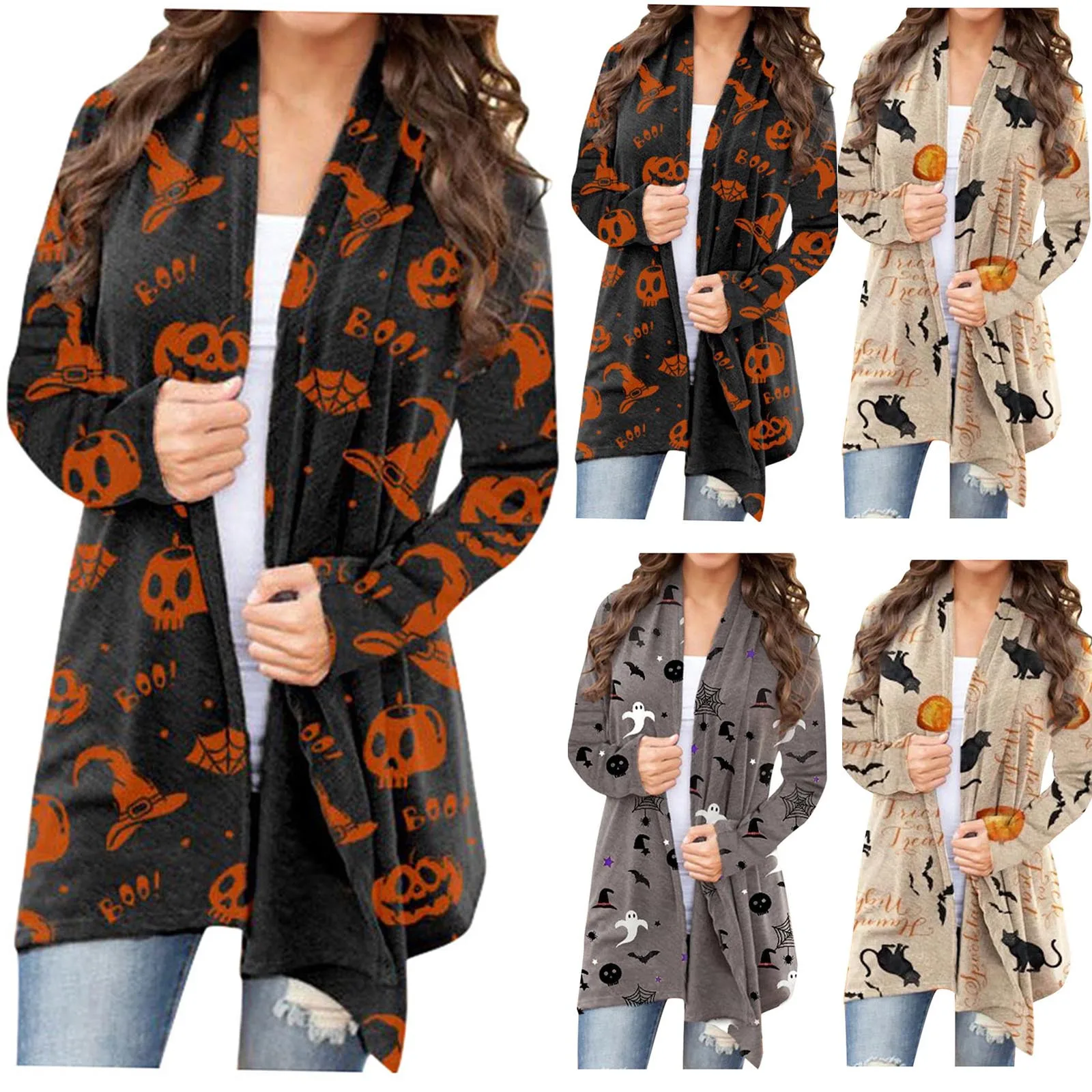 Кардиган женский, с принтом на Хэллоуин, большого размера, 2021