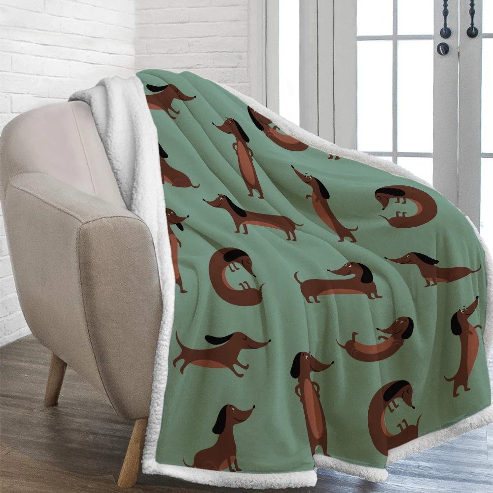 Плед двухслойный с рисунком таксы для детей и взрослых, одеяло для ...