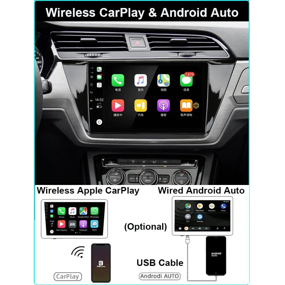 Android 11 Универсальный радио bluetooth carplay 9 дюймов 10,1 дюйм...