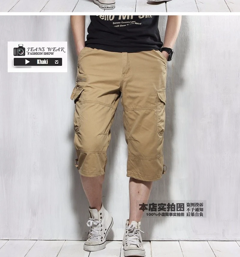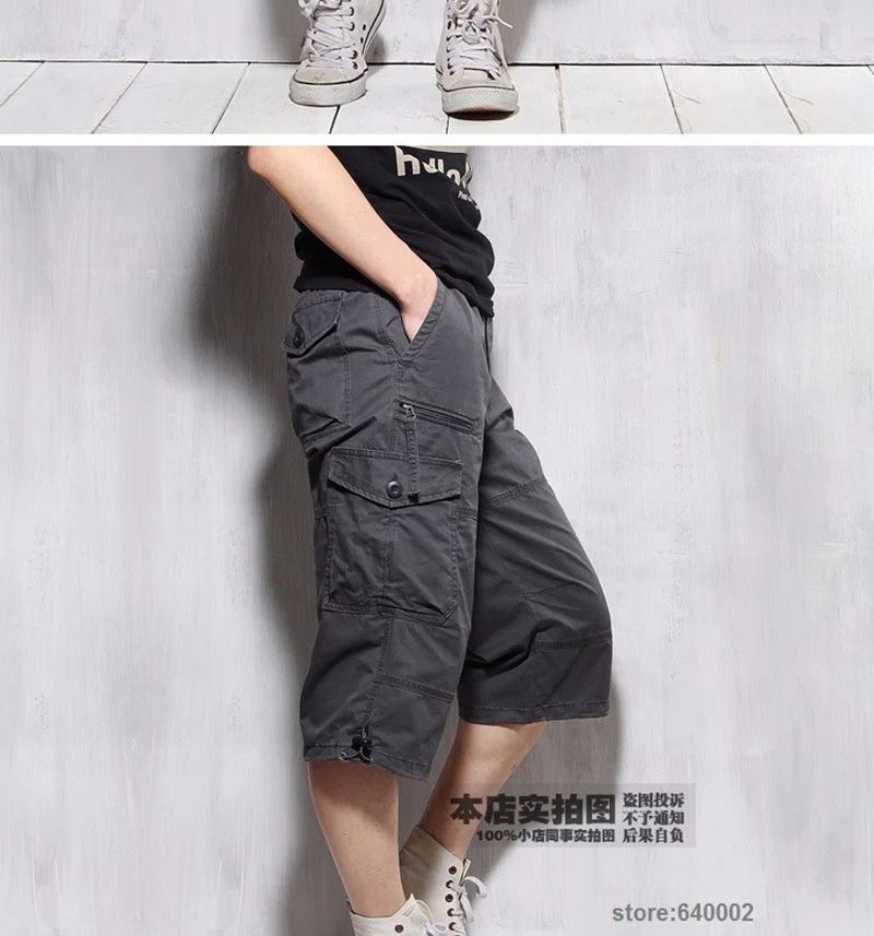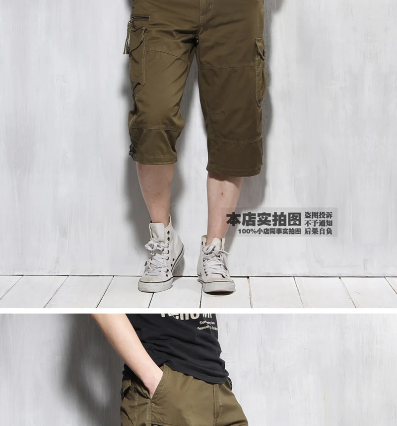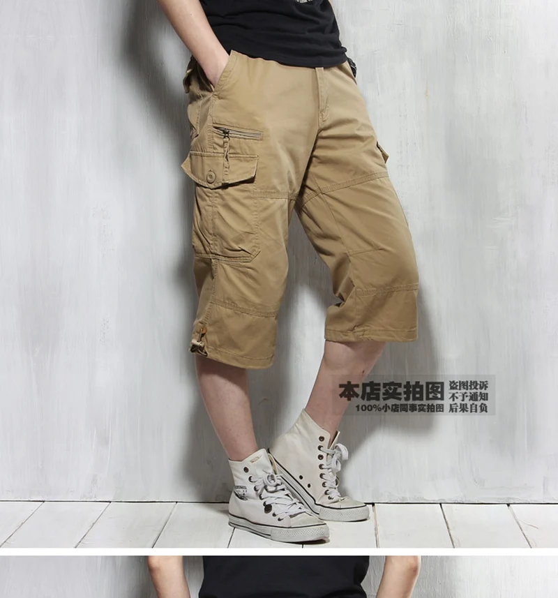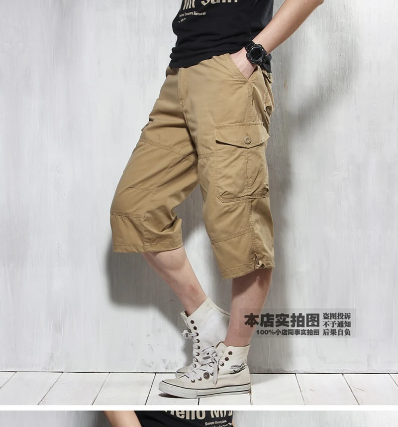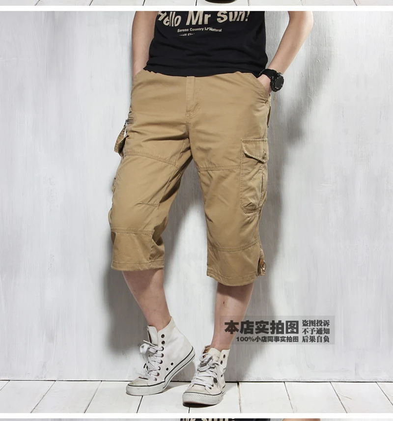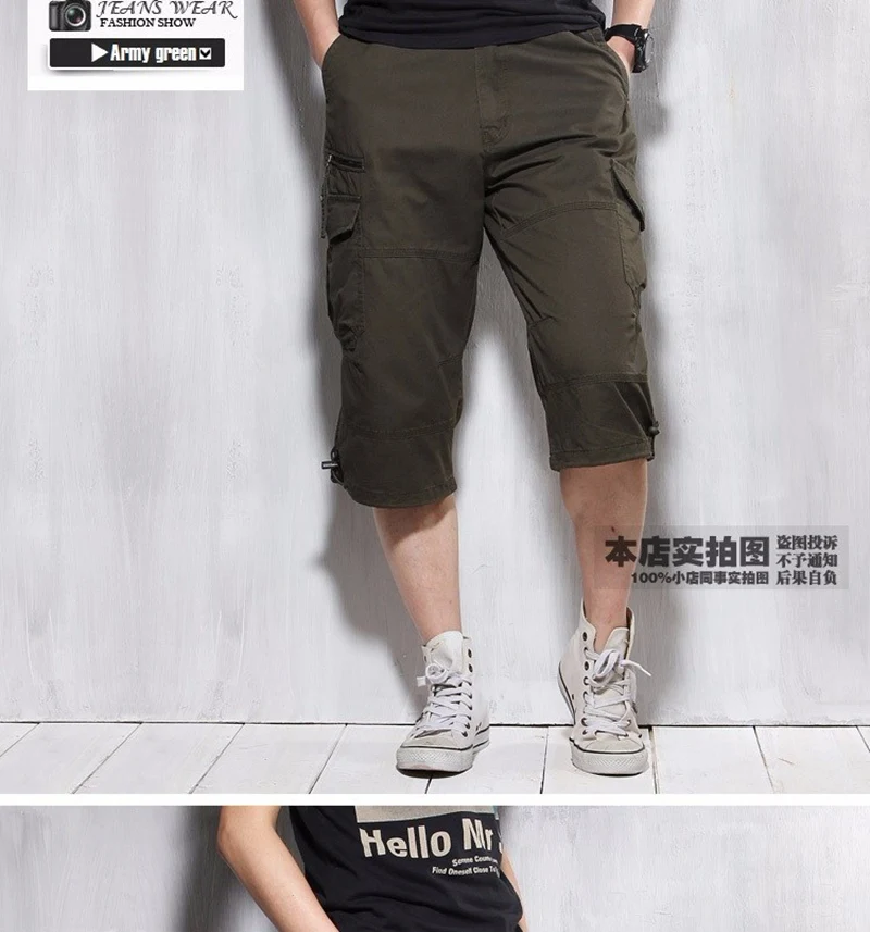 Мужские тонкие карго шорты с несколькими карманами хаки Свободные молнии плюс большой размер 5XL короткие мужские повседневные брюки длиной до колен весна лето