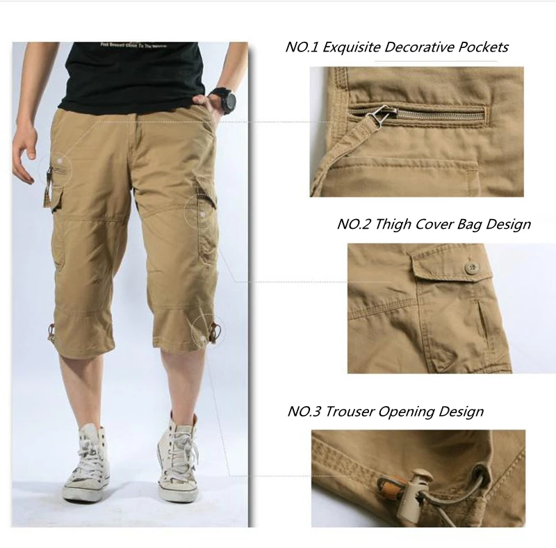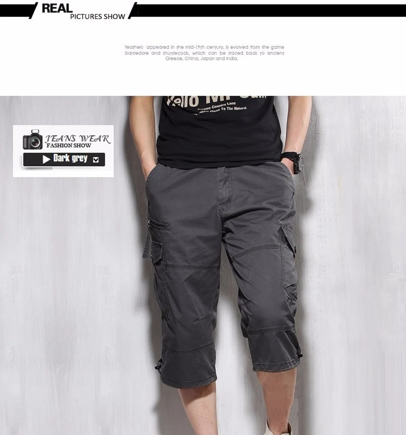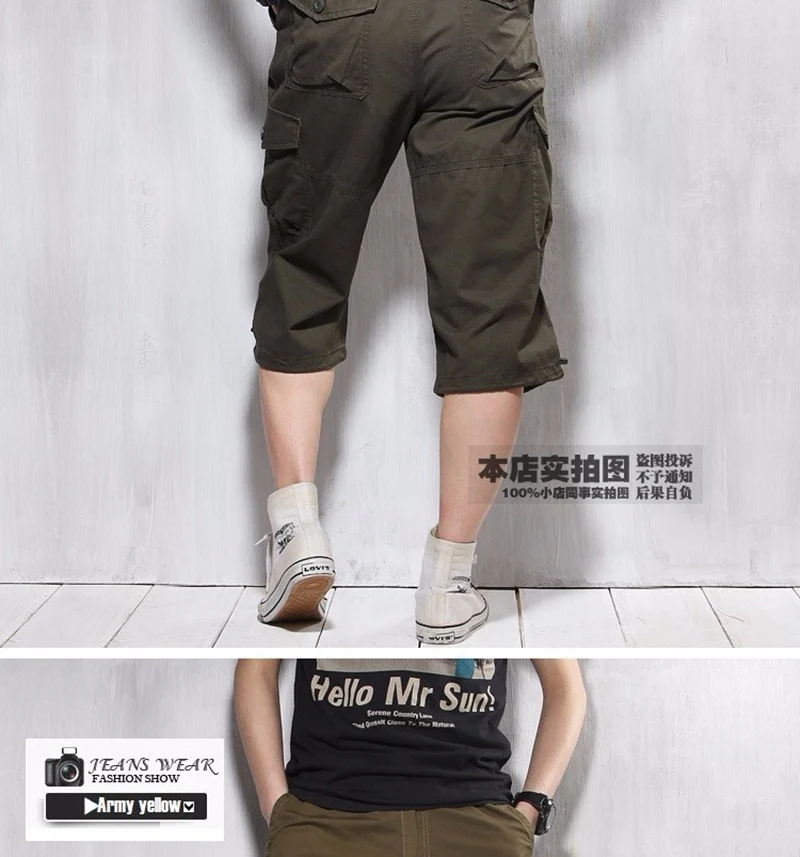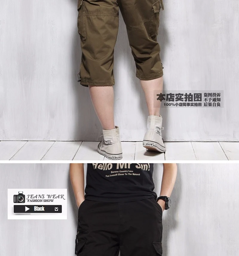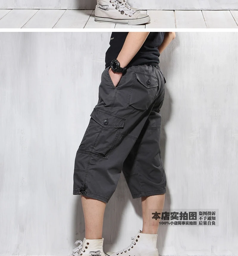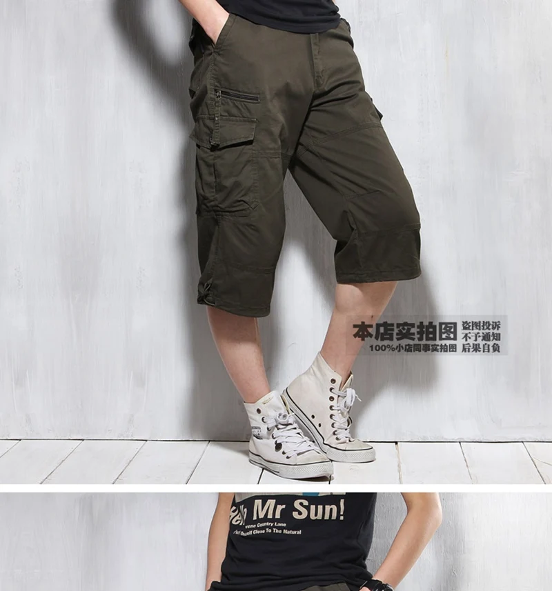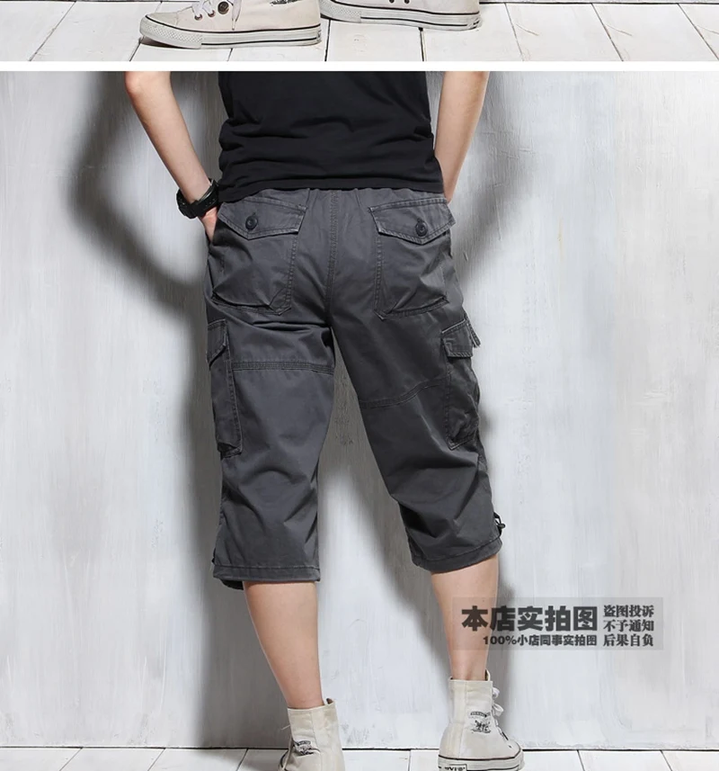 Мужские тонкие карго шорты с несколькими карманами хаки Свободные молнии плюс большой размер 5XL короткие мужские повседневные брюки длиной до колен весна лето