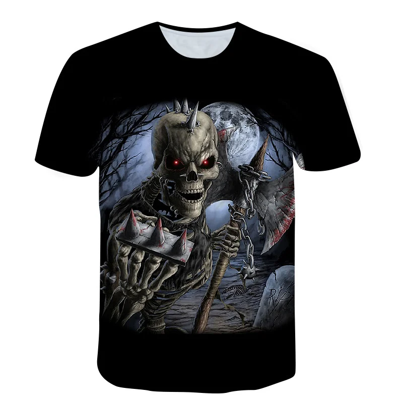 Футболка мужская, повседневная, с 3D-принтом черепа, лето 2021 г., ...