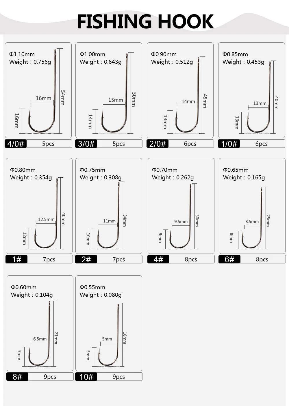 Набор рыболовных крючков Высококачественная углеродистая сталь 5-9 шт.упаковка, размер 1-10 #10-40 # Fly Jip, колючий глаз, Абердин для рыболовных снастей