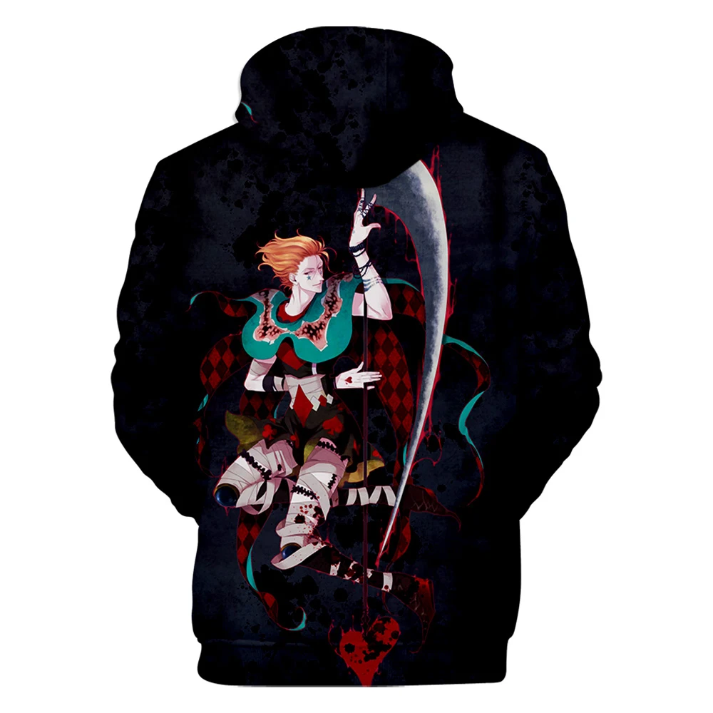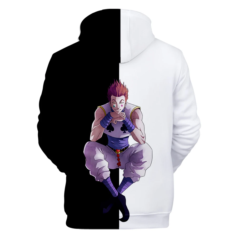 Новинка, толстовки с капюшоном Hisoka 3D, толстовки для мужчин и женщин, модные осенние комиксные пуловеры Hisoka черного и белого цветов для мальчиков и девочек