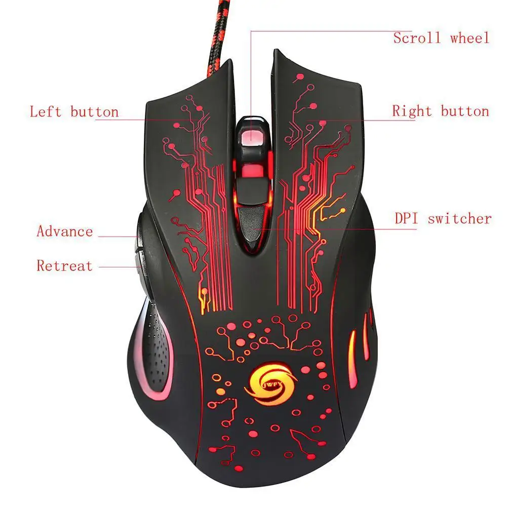 Светящаяся игровая мышь, Usb Проводная мышь, регулируемые 6 кнопок Vista 8 для 2000, поддержка XpMe73200dpi Os N2t6