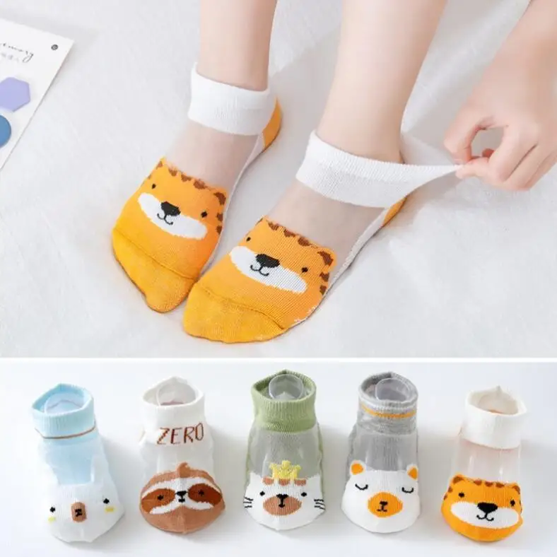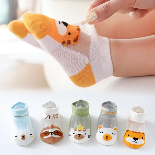 Детские носки, 5 парыкомпл., летние тонкие дышащие хлопковые сетчатые носки с мультяшными животными, От 0 до 5 лет, одежда для мальчиков и девочек