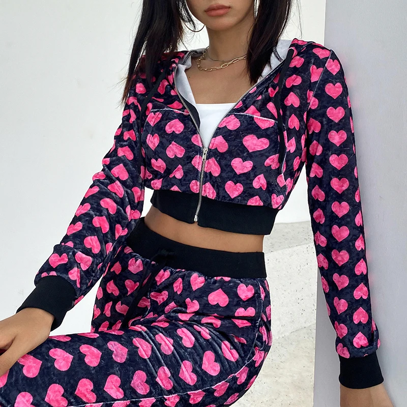 Женский спортивный костюм с принтом сердечек, повседневный спортивн...