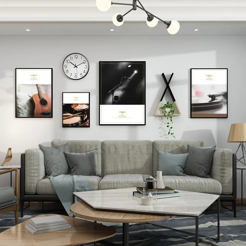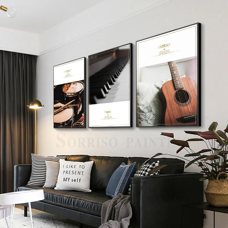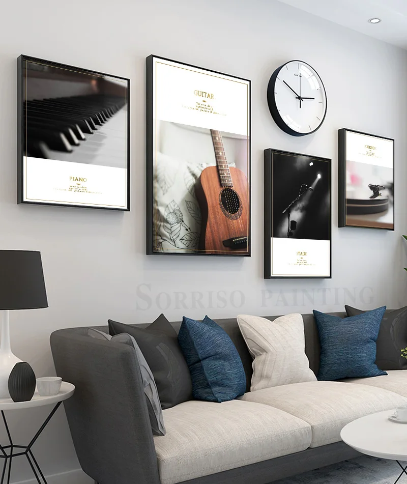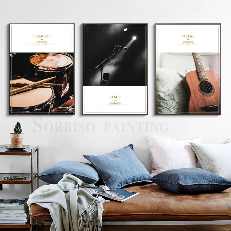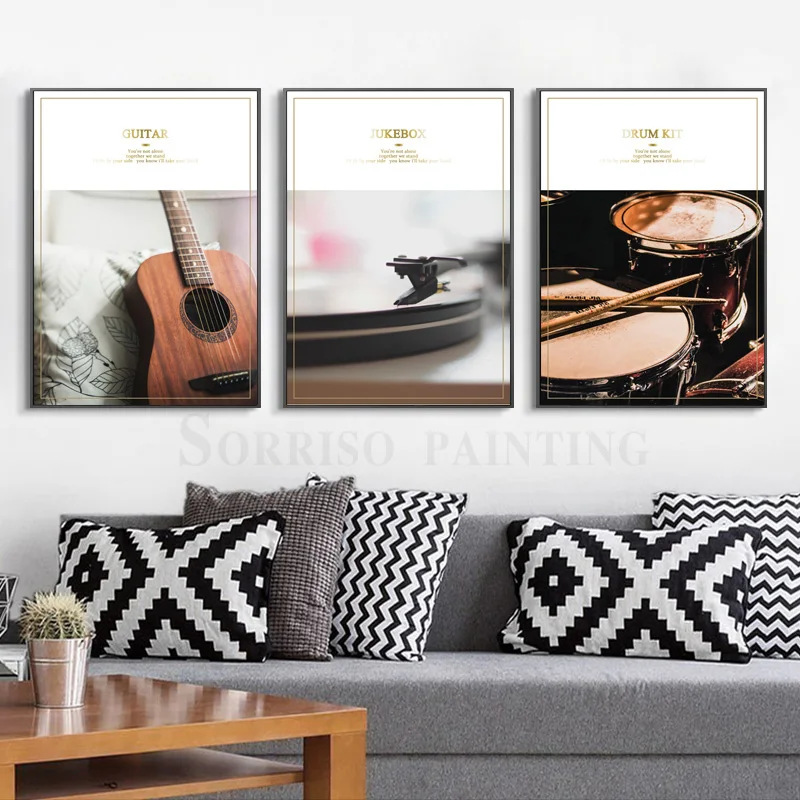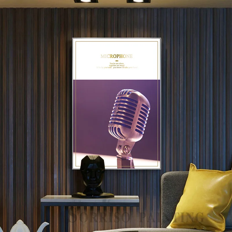 Микрофон для музыкальных инструментов, граммофон, гитара, фортепиано, фото, настенное искусство, домашний декор, плакаты и принты для бара