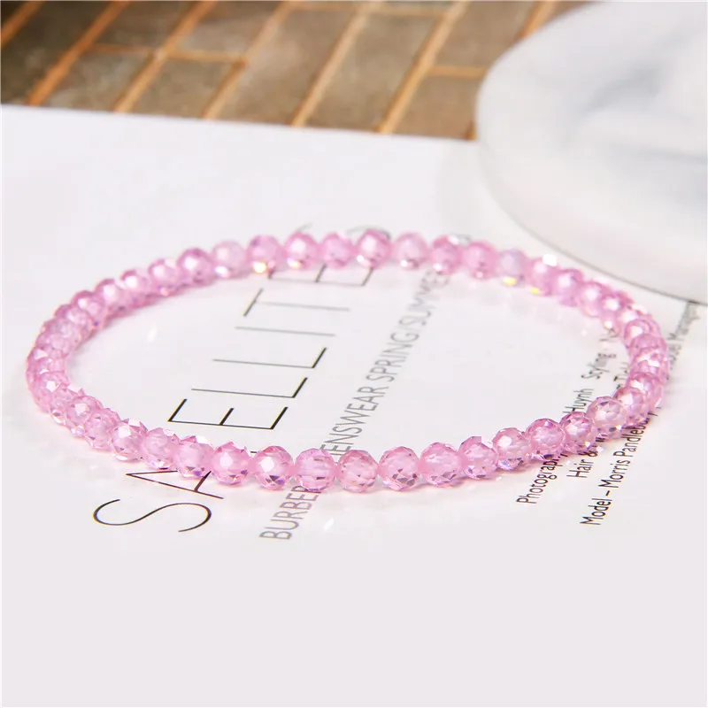 Браслет из искусственных циркониевых бусин, 4 мм, блестящий маленький турмалиновый аметист, кварцевые бусины, браслет, ювелирные изделия для йоги для женщин и мужчин