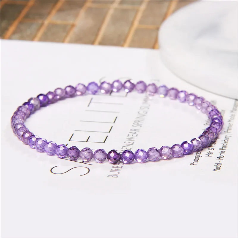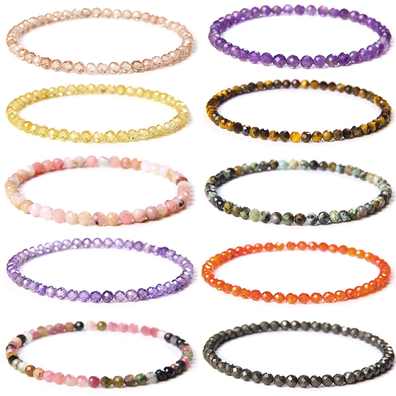 4 мм ограненный природный камень циркониевые бусины браслет блестящие маленькие турмалиновые Аметистовые кварцевые бусины браслет Йога ювелирные изделия для женщин и мужчин