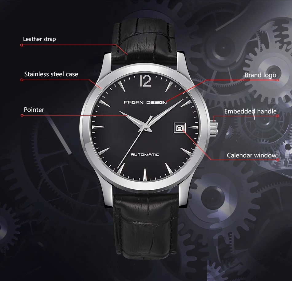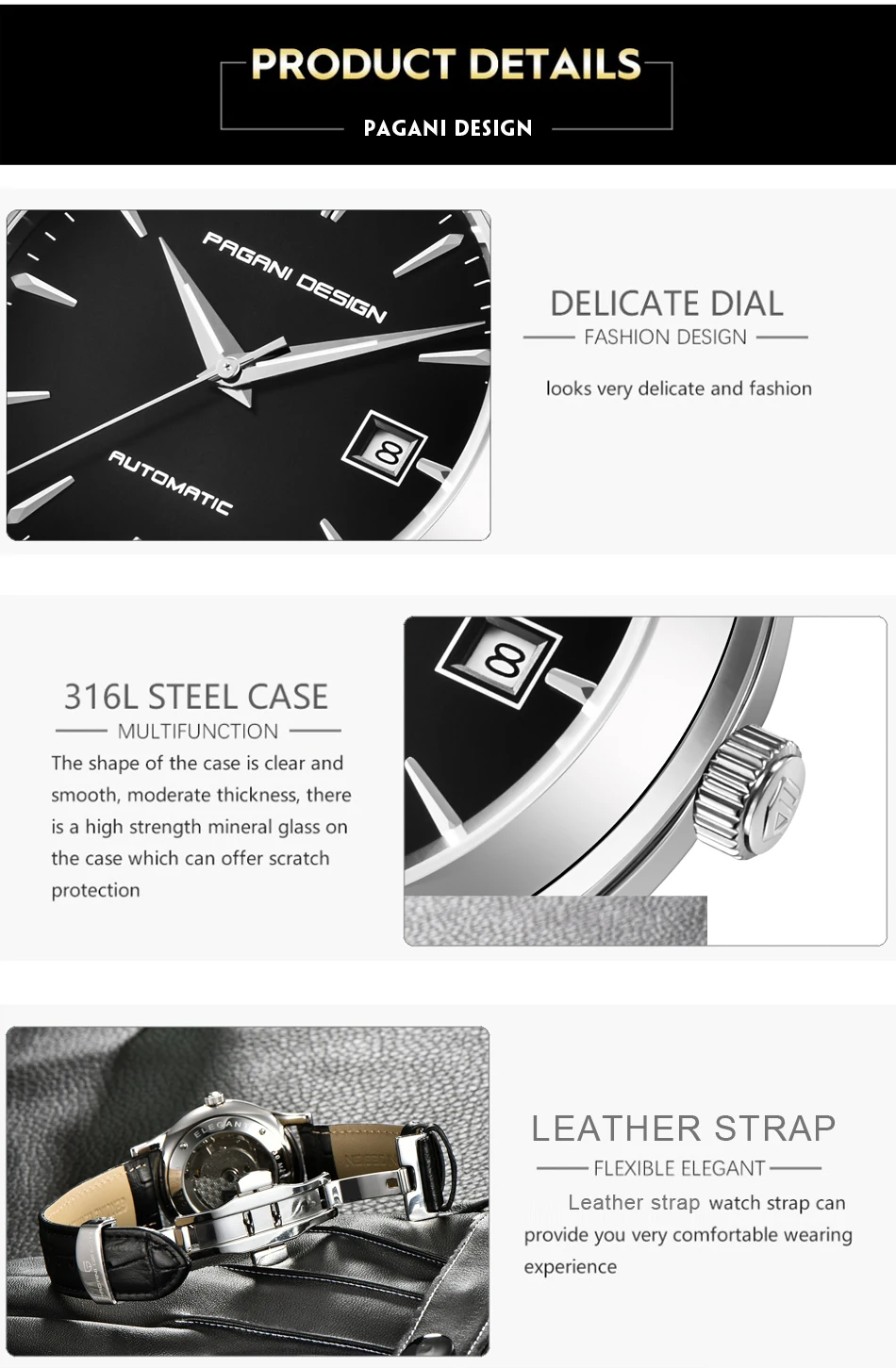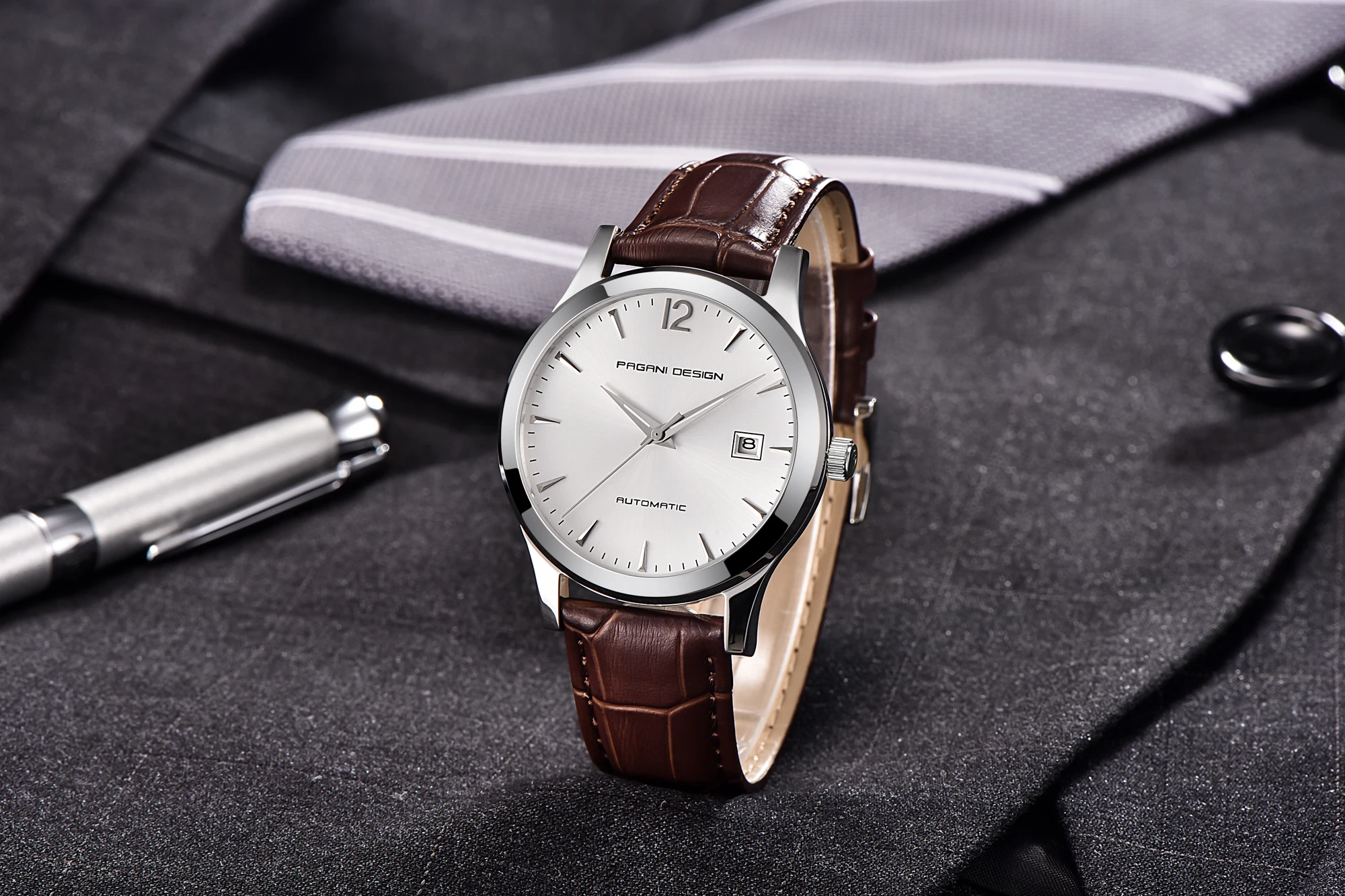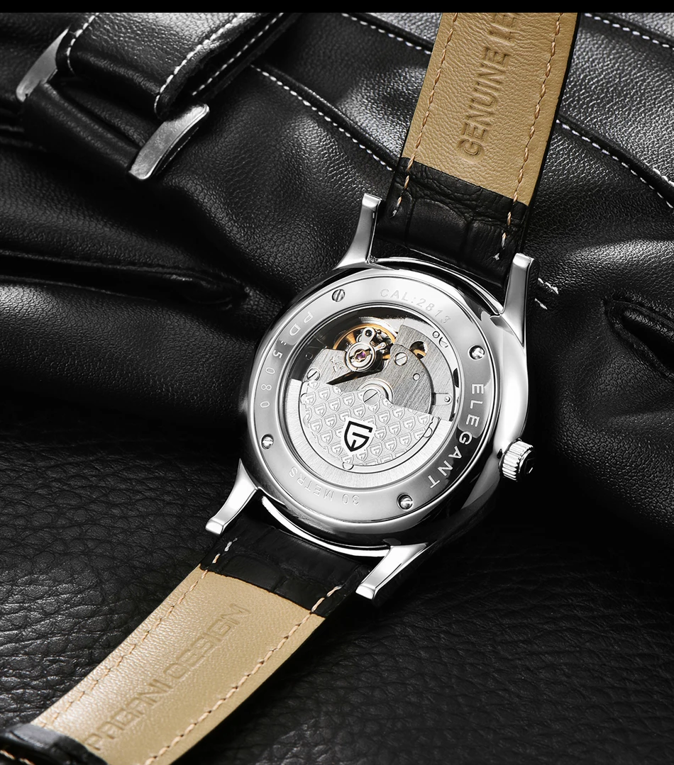 Часы наручные PAGANI Мужские механические, Классические водонепроницаемые брендовые автоматические, с ремешком из натуральной кожи, 2021