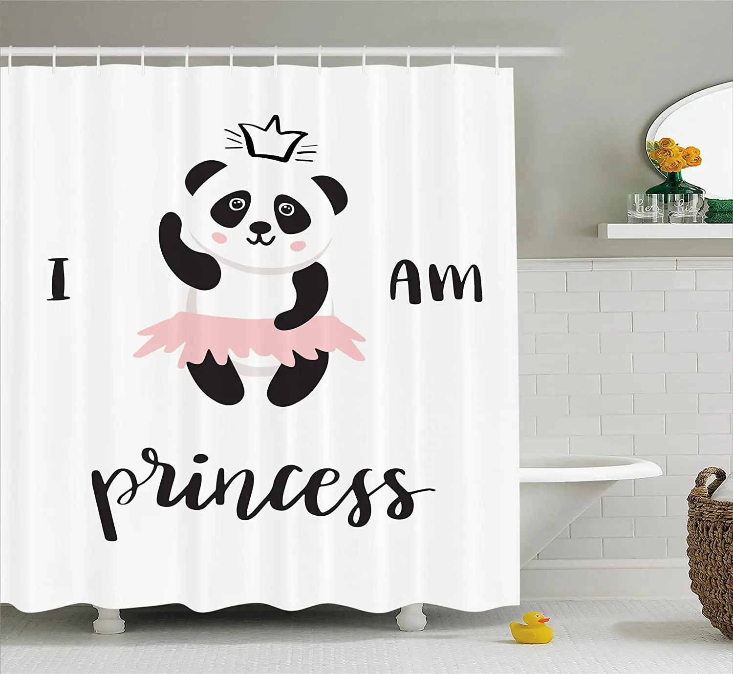 Занавеска для душа Я принцесса, забавная балерина, панда, медведь, танцующая в розовой юбке, детское домашнее украшение, занавески для ванной комнаты