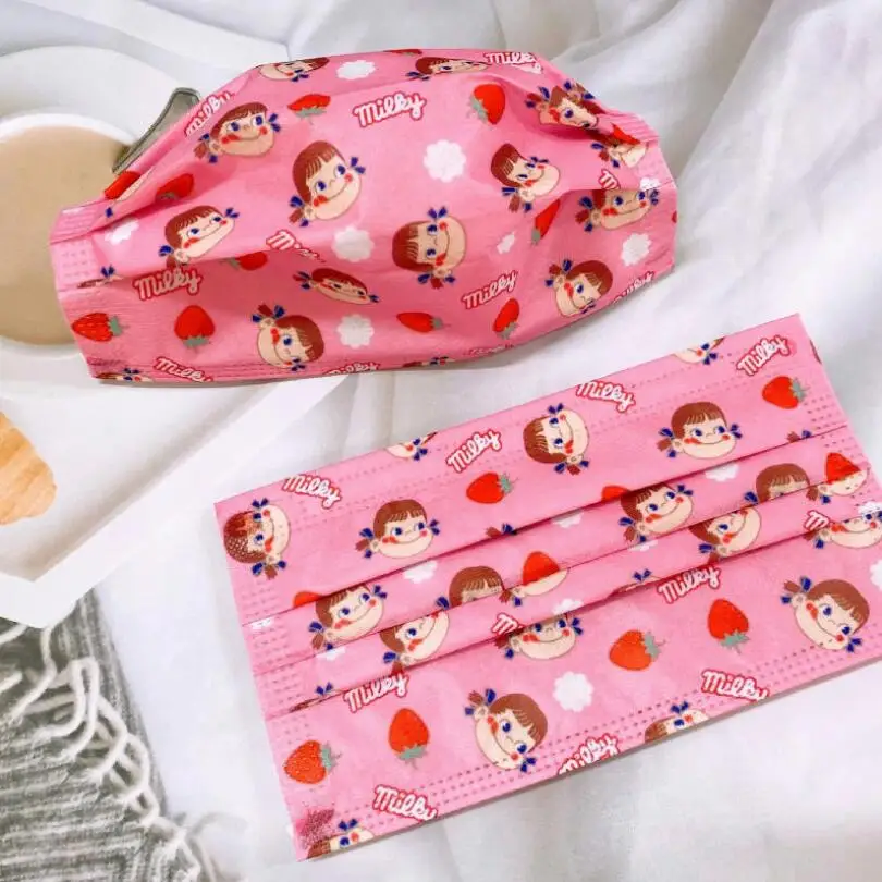 Маска одноразовая розовая с мультяшным принтом, 50 шт.