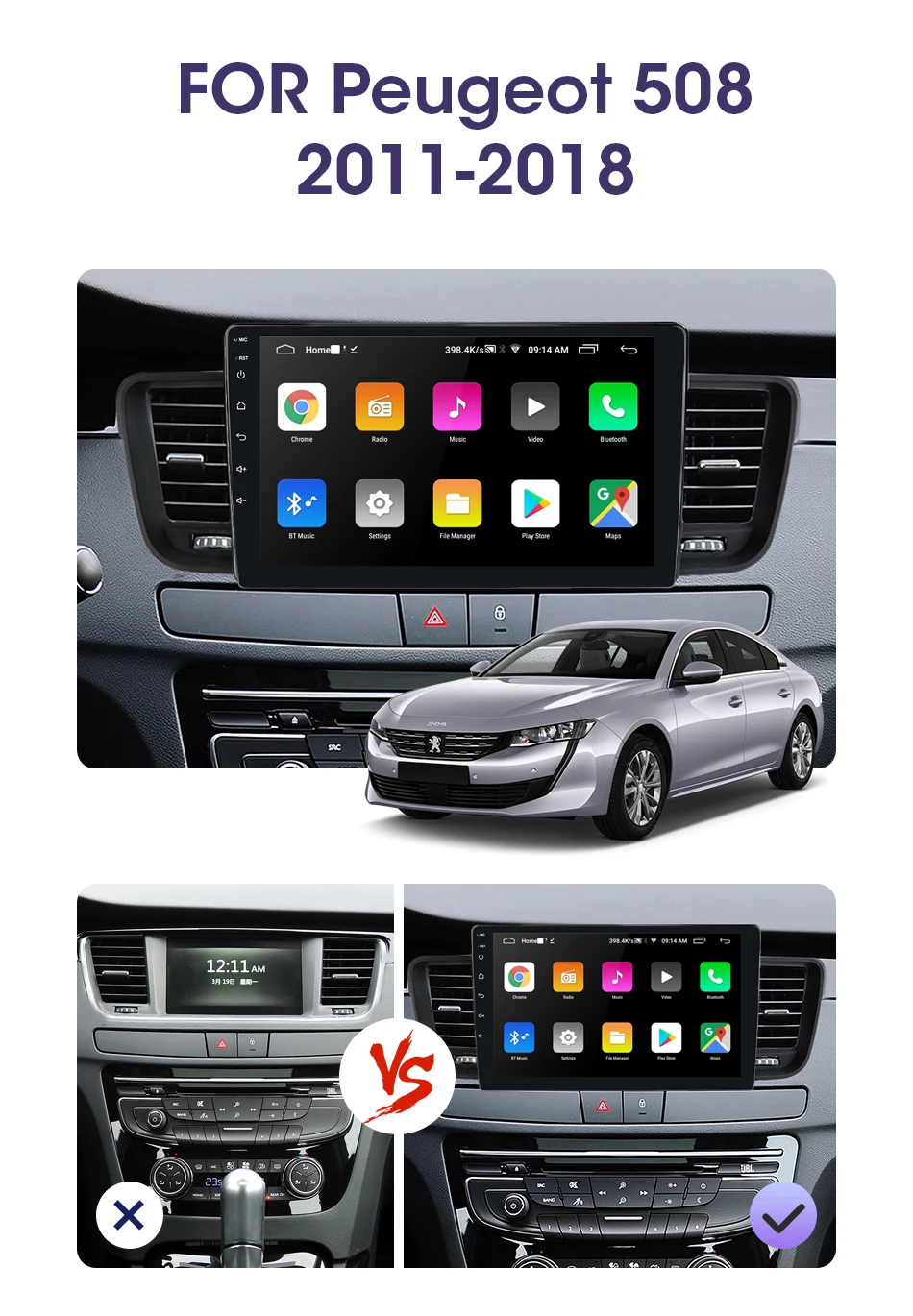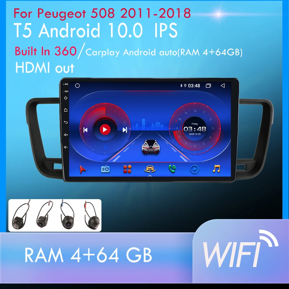 Автомагнитола 2DIN, Android 10, мультимедийный видеоплеер для Peugeot 508, 2011, 2012-2018, Carplay, стерео, DSP, GPS, RDS, без DVD, 360, с камерой