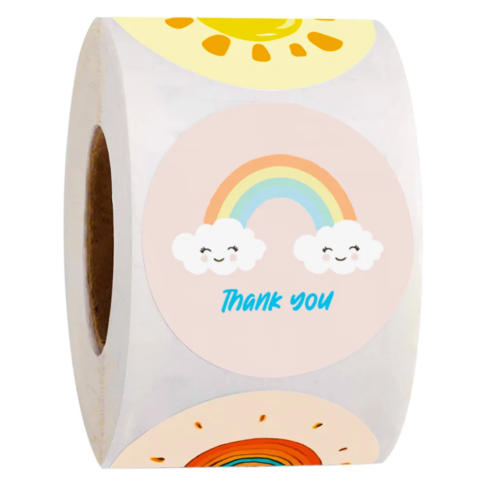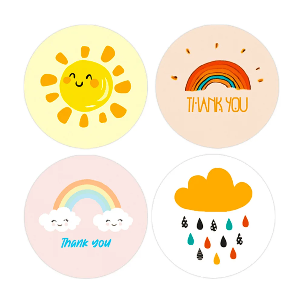 Наклейки Детские в виде солнца и радуги, 4 узора, 50-500 шт., стикеры с надписью Thank You для подарка ручной работы, этикетки декора