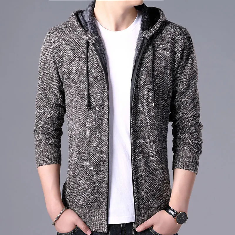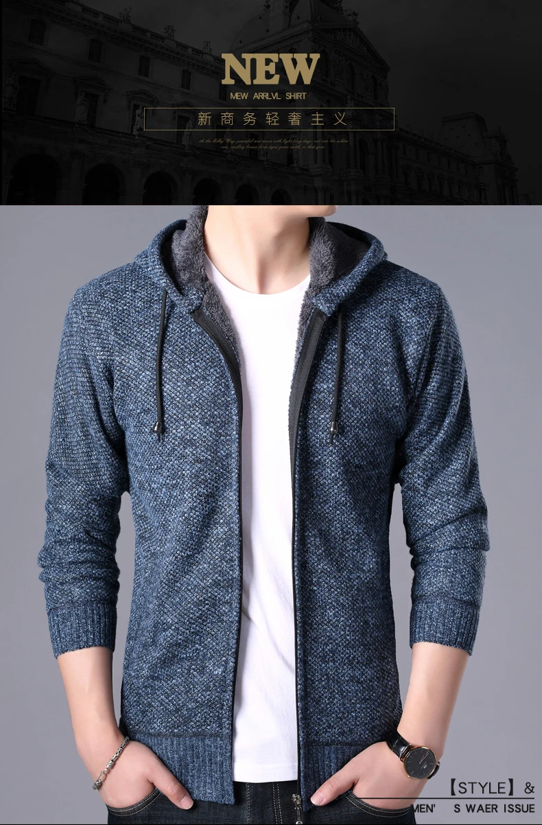 Преимущества бесплатной осени корейские мужские толстые свитера с капюшоном с бархатной подкладкой мужской кардиган вязаные свитера пальто однотонная куртка мужская модель