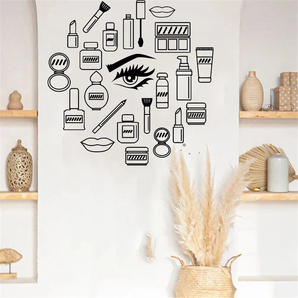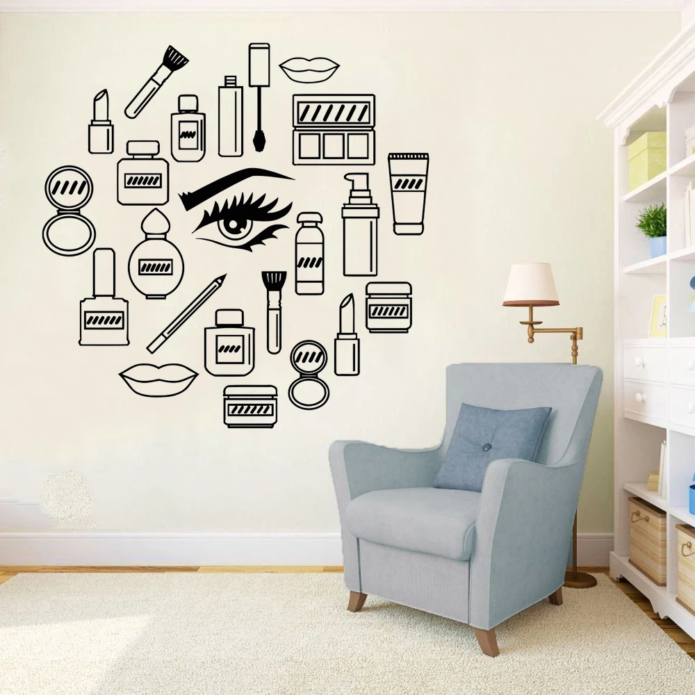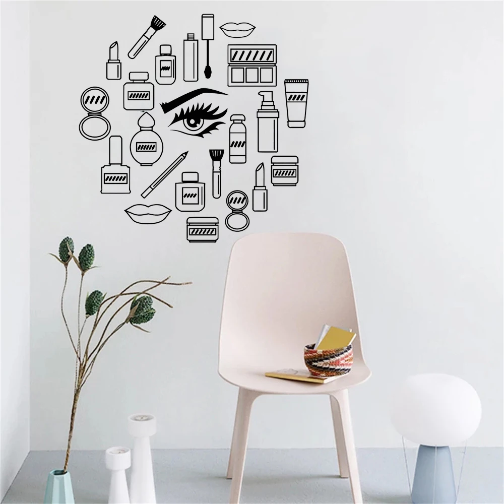 Виниловая наклейка на стену для макияжа, косметика для женщин и девушек, наклейки для салона красоты, уникальный подарок, модель для девушек, глаза для украшения стен