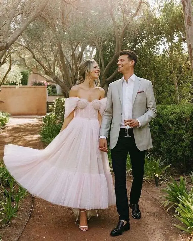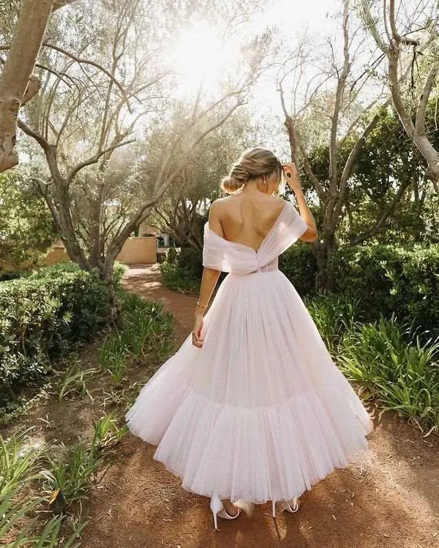 Женское вечернее платье в горошек LORIR, розовое ТРАПЕЦИЕВИДНОЕ ПЛАТЬЕ до середины икры, с открытыми плечами, для выпускного вечера, 2021