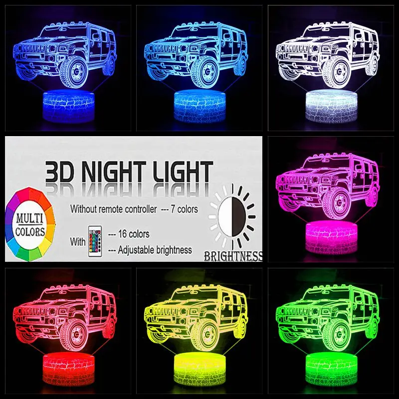 Светодиодный ночной Светильник для внедорожника, внедорожника, Ночной светильник, игрушка, 3D, горный велосипед, приключения, автомобиль, декоративное украшение, подарок, приз, светильник