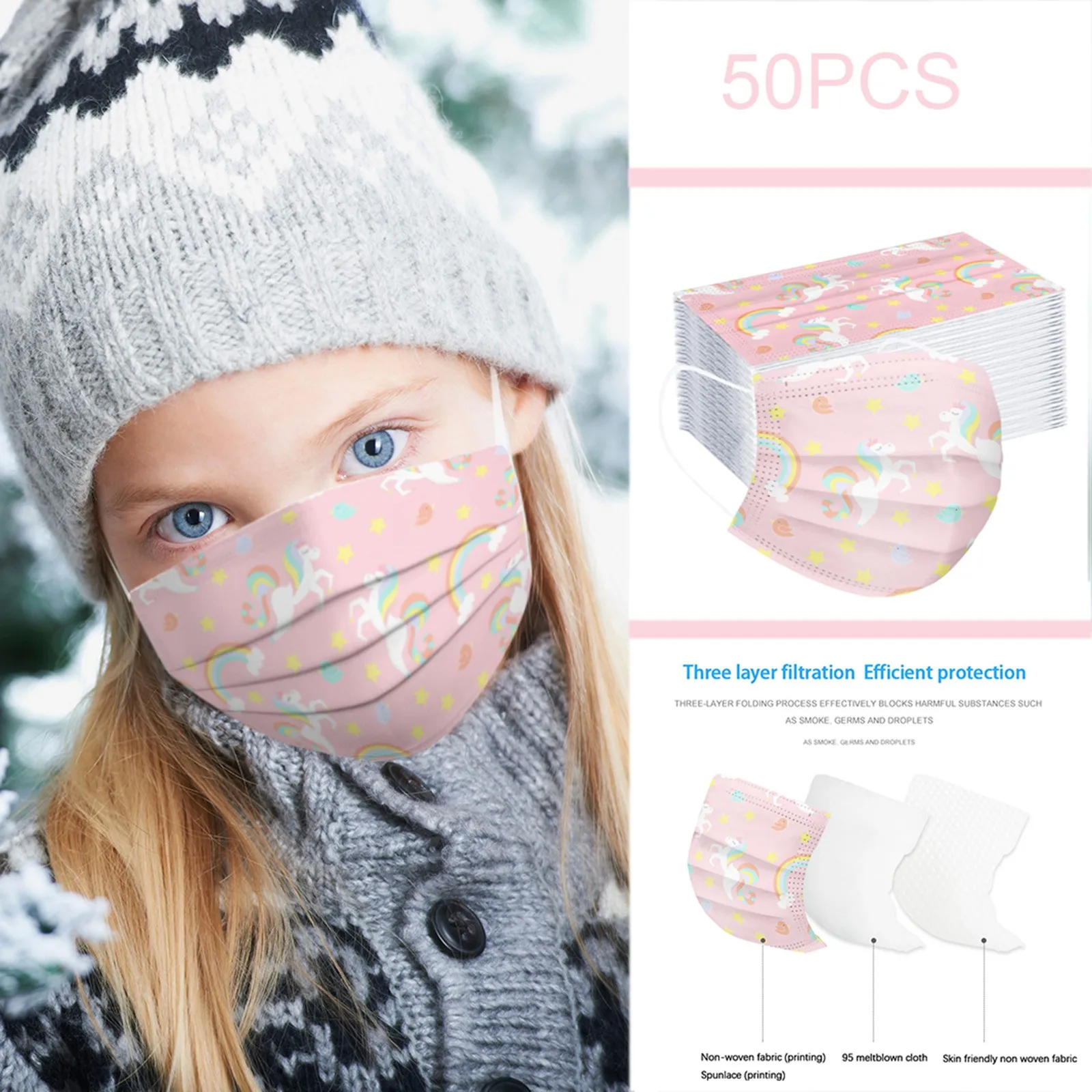 50 шт. одноразовая детская маска с принтом единорога гигиена Рождество Косплей Маска для рта для детей для девочек 3-слойные одноразовые маски для детей