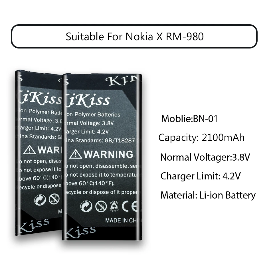 Оригинальный сменный аккумулятор KiKiss большой емкости 2100 мАч для Nokia Lumia X 1045 RM-980 RM 980 Normandy BYD BN-01