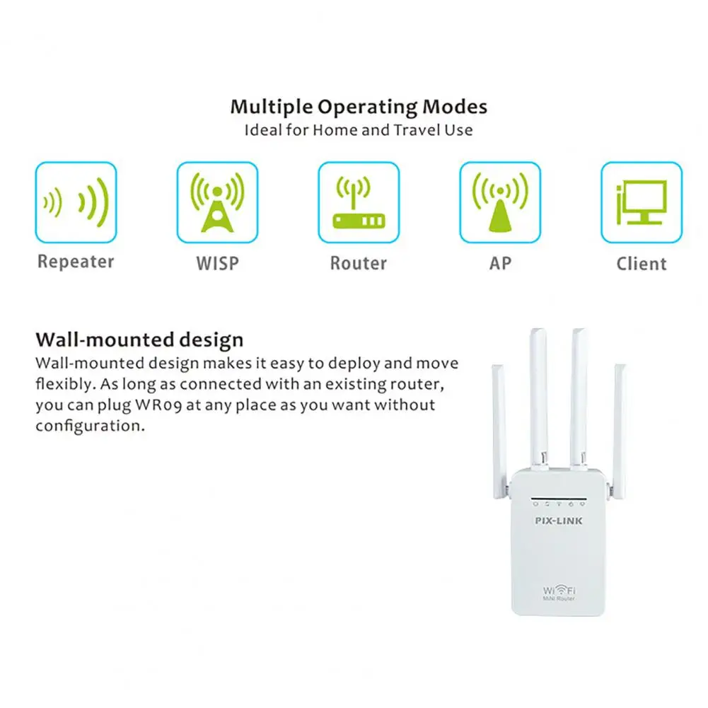 Поддержка нескольких режимов работы, беспроводной повторитель является многофункциональным и практичным.