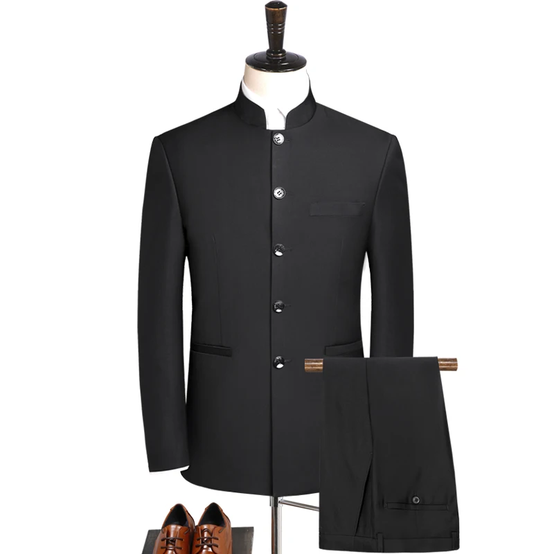 Мужской пиджак и брюки, большие размеры, 2021, костюм-туника с воротником-стойкой, в китайском стиле, для длительной носки, S-5XL
