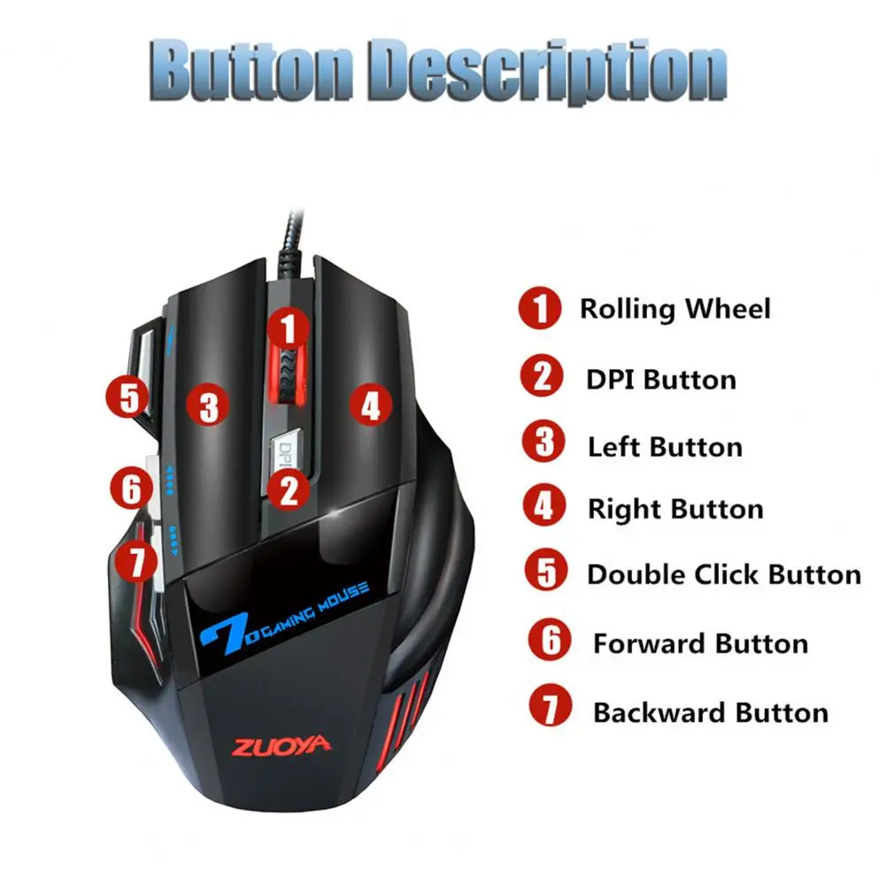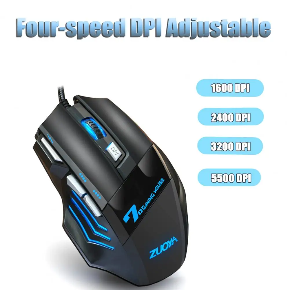 USB-мышь ZUOYA игровая проводная, 2400 DPI, 7 светодиодный пок, бесшумная