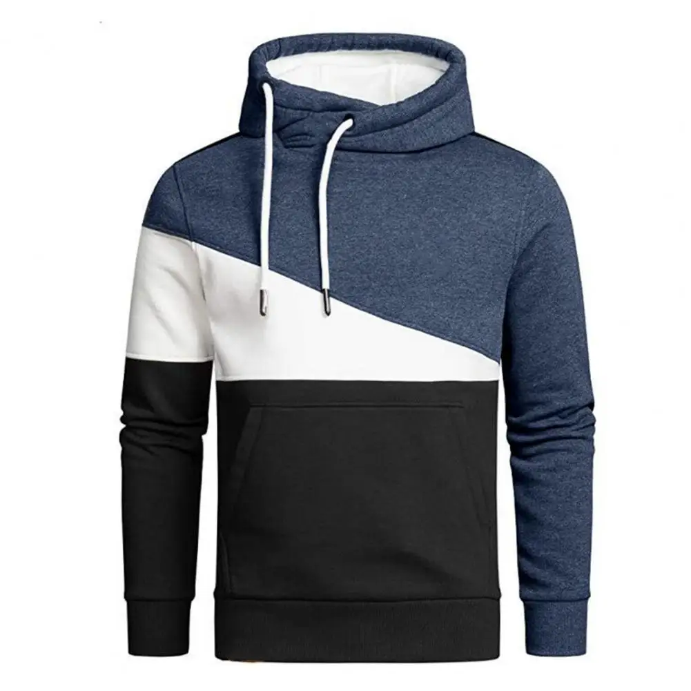 Цвет блока передний карман пуловер Толстовка Осень Зима теплый длинный рукав с капюшоном водолазка Мужская толстовка верхняя одежда для путешествий